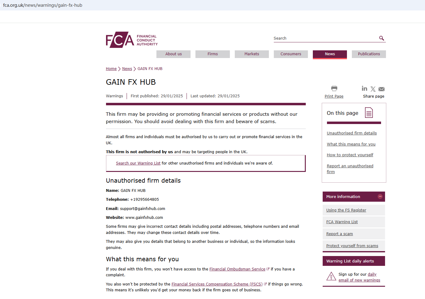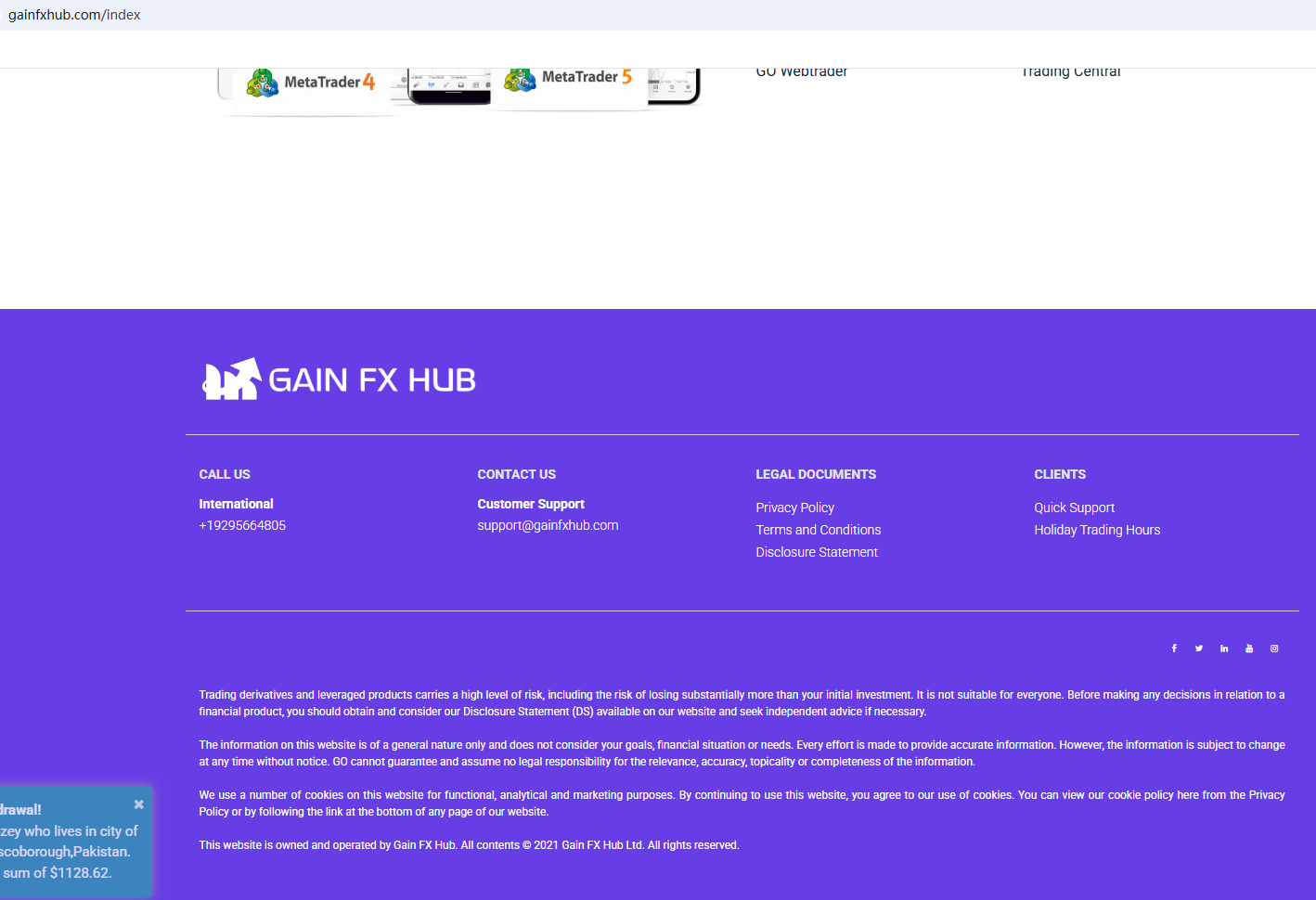 In addition, the Financial Conduct Authority (FCA) issued a warning against GAIN FX HUB, believing this company might be providing financial services or products without proper authorization in the UK.