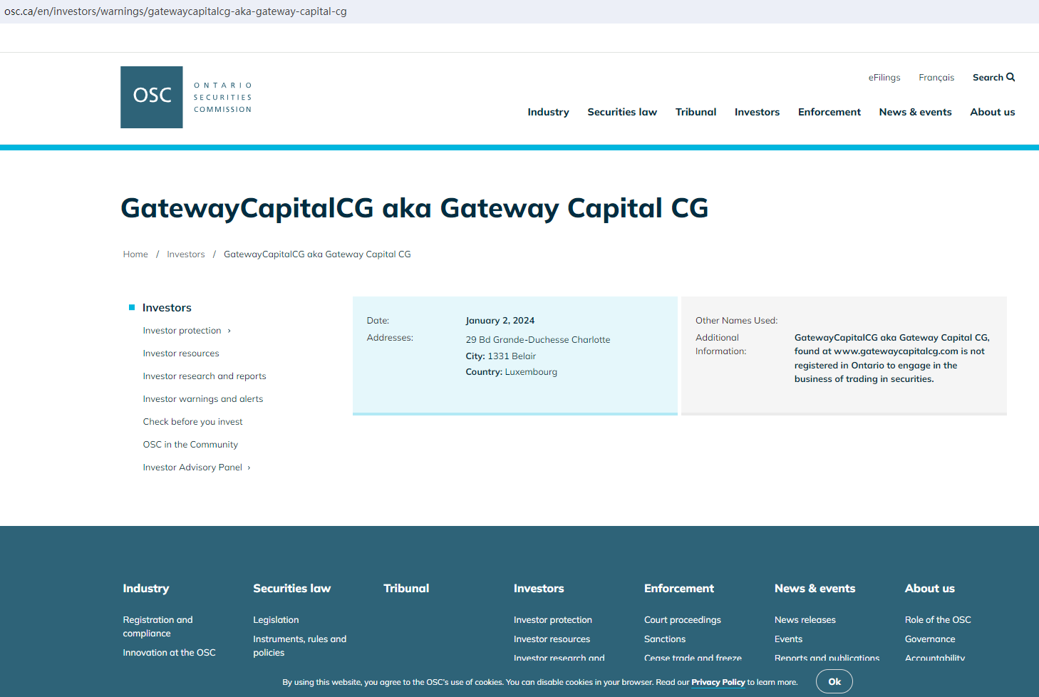 The truth is that GATEWAYCAPITALCG is not regulated by any regulators. Letting it hold or control investors' money is unsafe, and the money can not be protected by any laws.