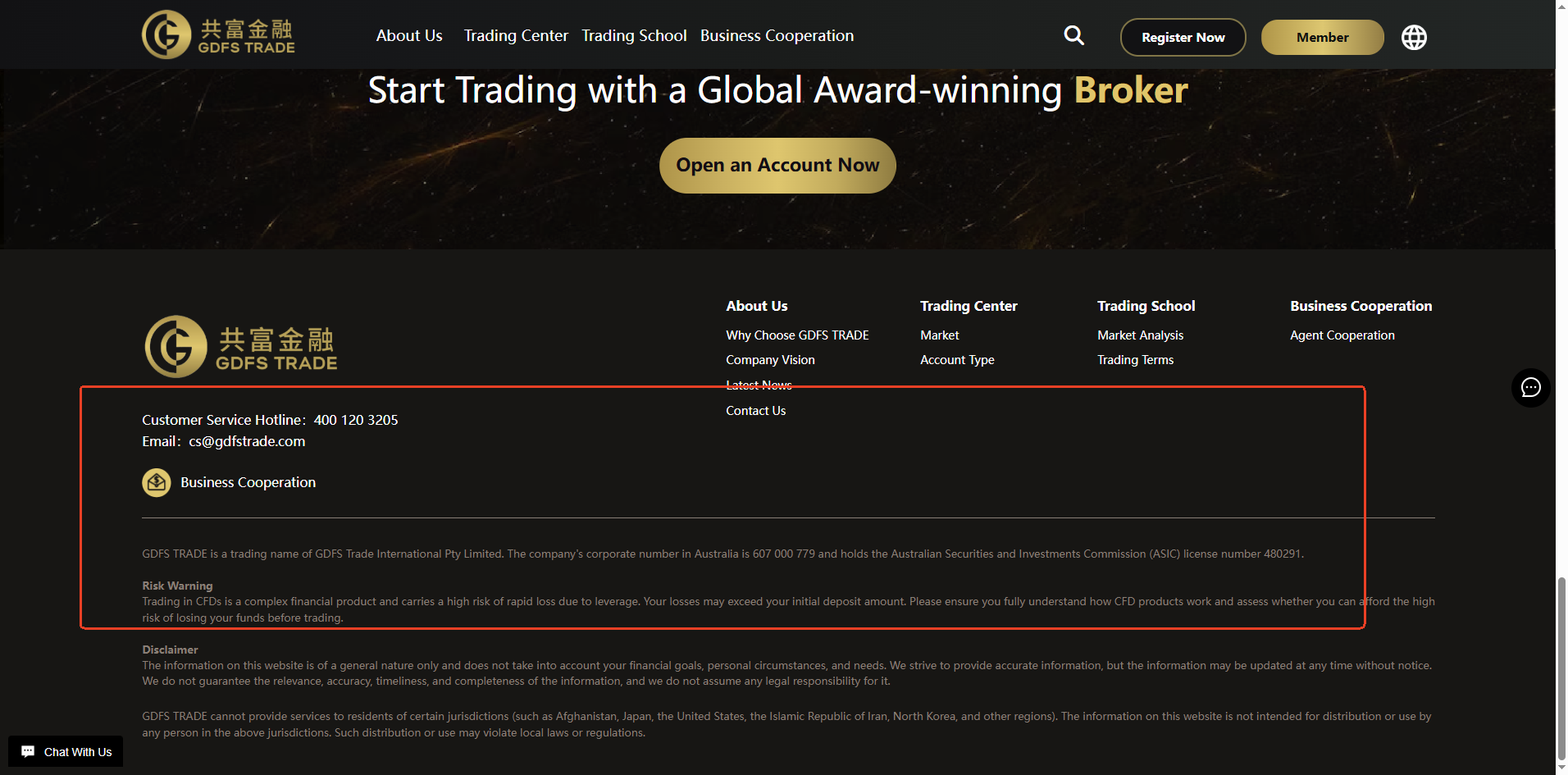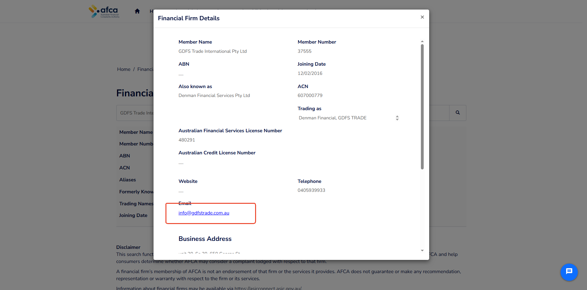 GDFS TRADE claims to operate as a trading name of GDFS Trade International Pty Limited, regulated by the Australian Securities and Investments Commission (ASIC). While our checks confirm that a company by this name is indeed registered with ASIC, we have identified that the official email domain listed in ASIC’s records is gdfstrade.com.au, which does not match the website domain currently used by the GDFS TRADE platform.