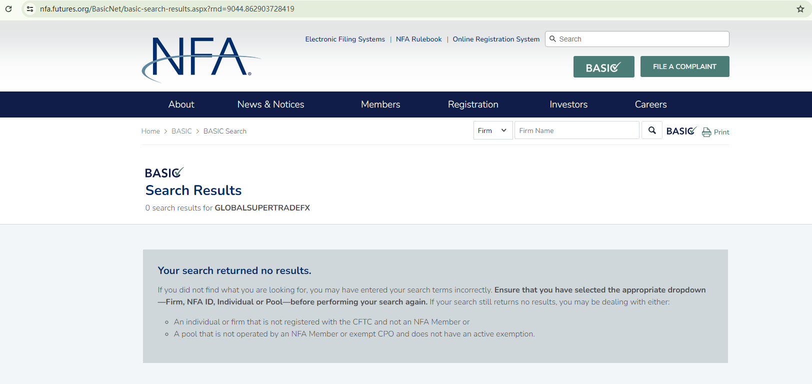 Furthermore, while Globalsupertradefx claims to have offices in the UK and the US, our verification with the Financial Conduct Authority (FCA) and the National Futures Association (NFA) indicates that it is not registered with either of these regulatory bodies, making its operations illegal. This lack of registration further undermines its credibility and legality.