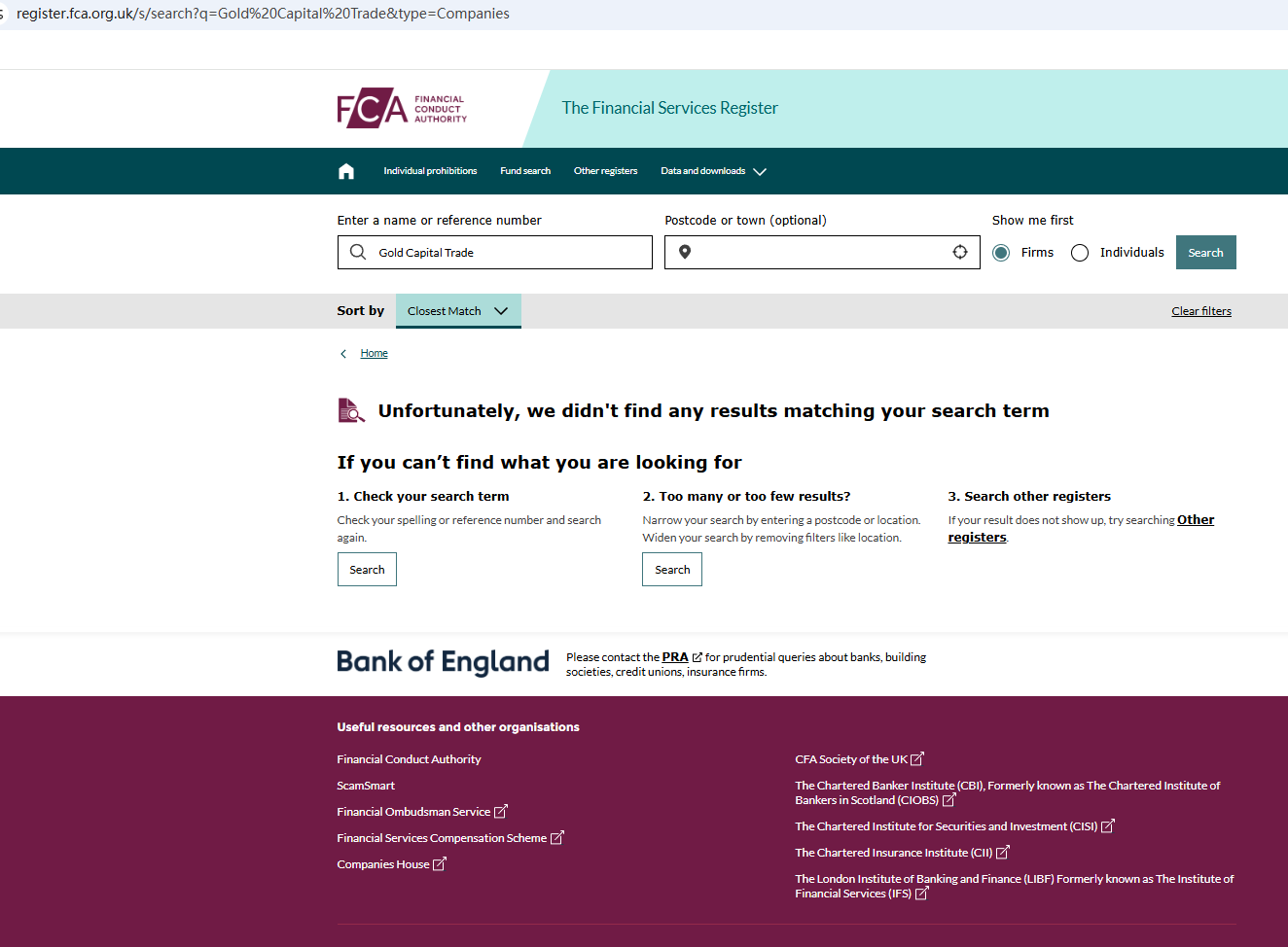 According to its website, the company claims that it is regulated in the UK. Upon investigation, no matching information was found in the Financial Conduct Authority (FCA). In addition, the New Zealand Financial Markets Authority (NZ FMA) added Gold Capital Trade to its warning list, stating that this is a fake investment platform.