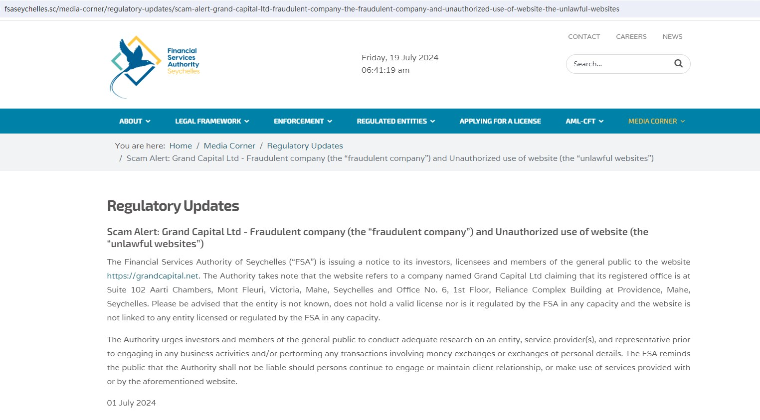 Grand Capital claims to be reliable and registered in Seychelles. But the funny thing is that Seychelles has issued a warning against it. In addition, it does not display any valid regulatory information on its website for inquiry, which is not trustworthy.
