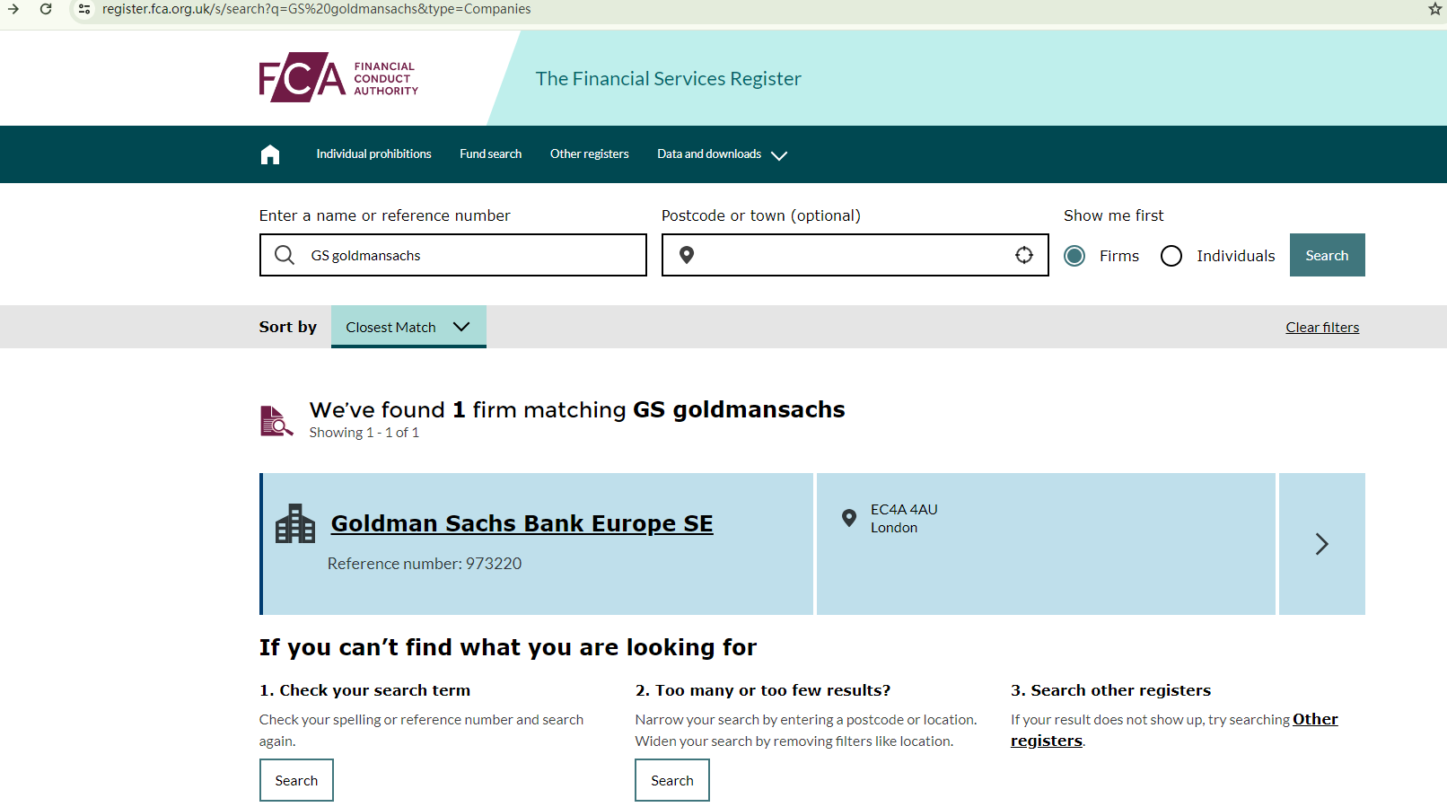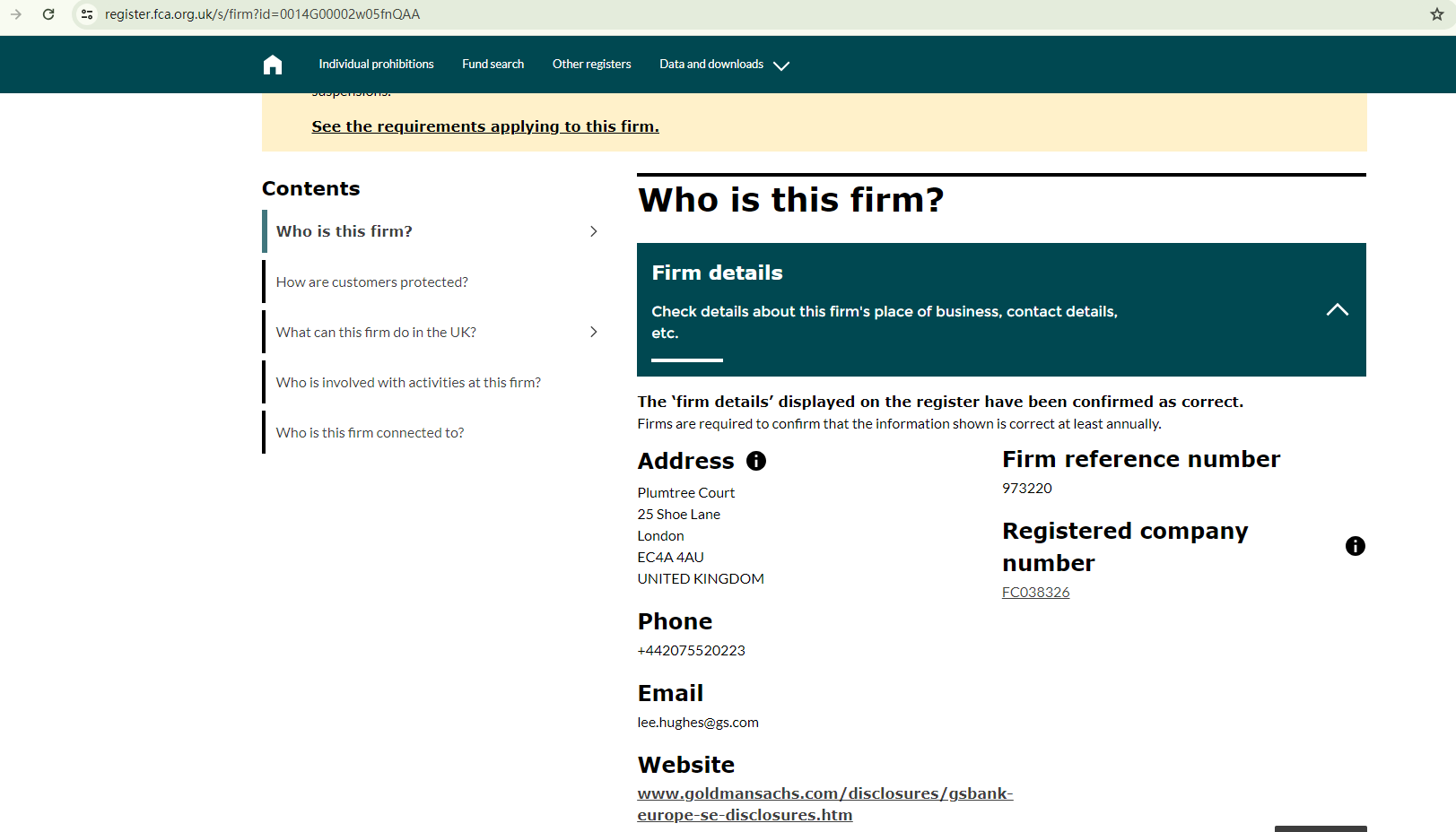 (The Goldman Sachs Bank Europe SE has its own website and all the records from the FCA suggest that it has nothing to do with GS goldmansachs.)