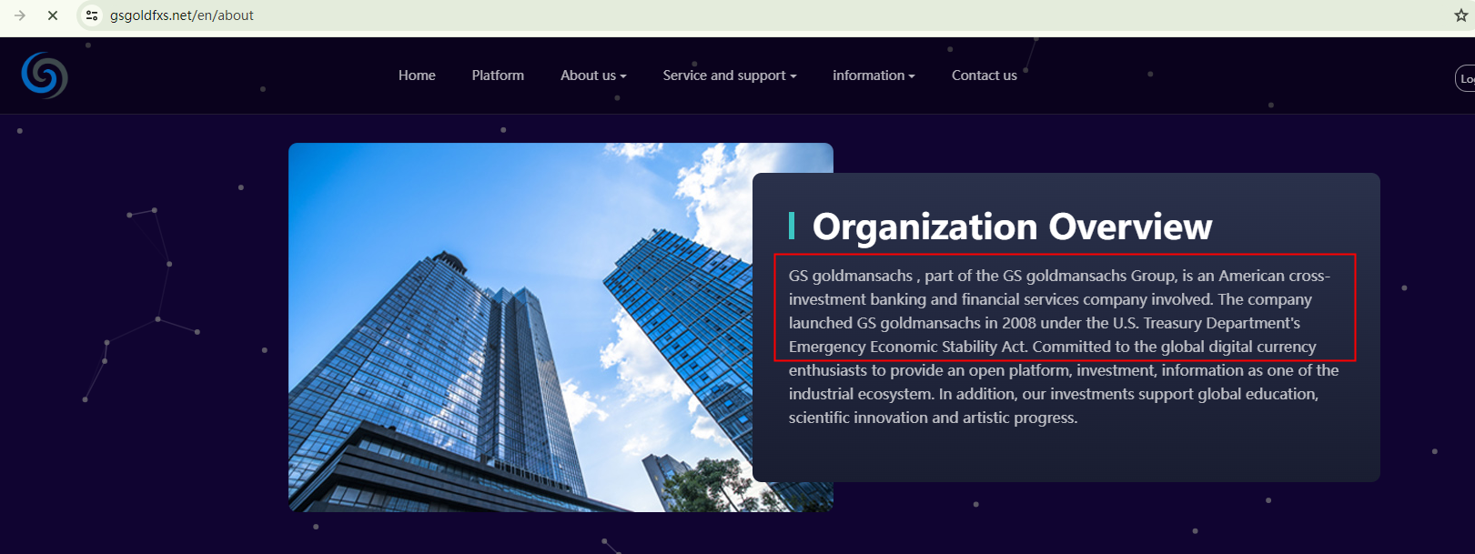 GS goldmansachs is a prime example of a group scammers who exploit basic forex broker website templates to excute their fraudulent schemes.