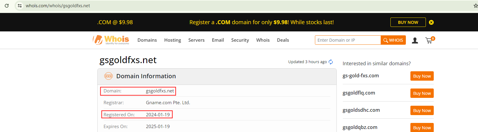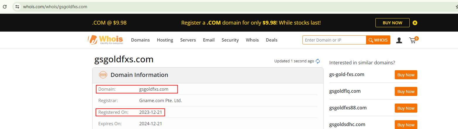 These entities typically have short lifespans, vanishing as soon as their deceptive activities are detected, only to resurface under a different brand and web address. These sites are often hastily constructed. For instance, our examination of GS goldmansachs' two domain names, gsgoldfxs.com and gsgoldfxs.net, suggests that the former was registered in December 2023 and the latter in January 2024. It's worth noting that gsgoldfxs.com is currently inaccessible.