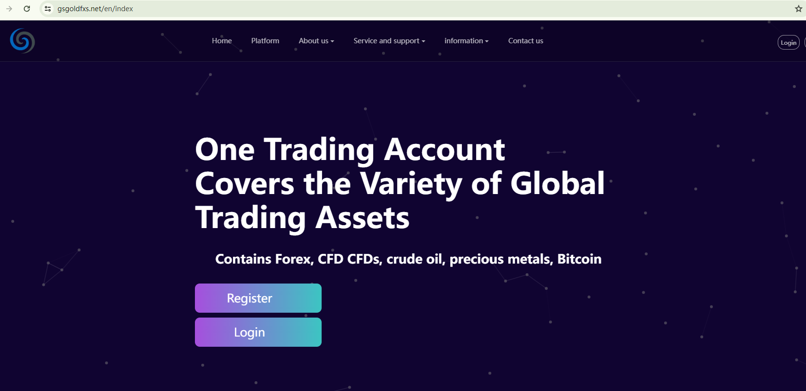 BrokersView found that the domain "https://gsgoldfxs.net/en/index;http://gsgoldfxs.com/" are currently inaccessible. This is widely regarded as a significant red flag, as the suspension of a broker's website often points to underlying regulatory or operational issues.