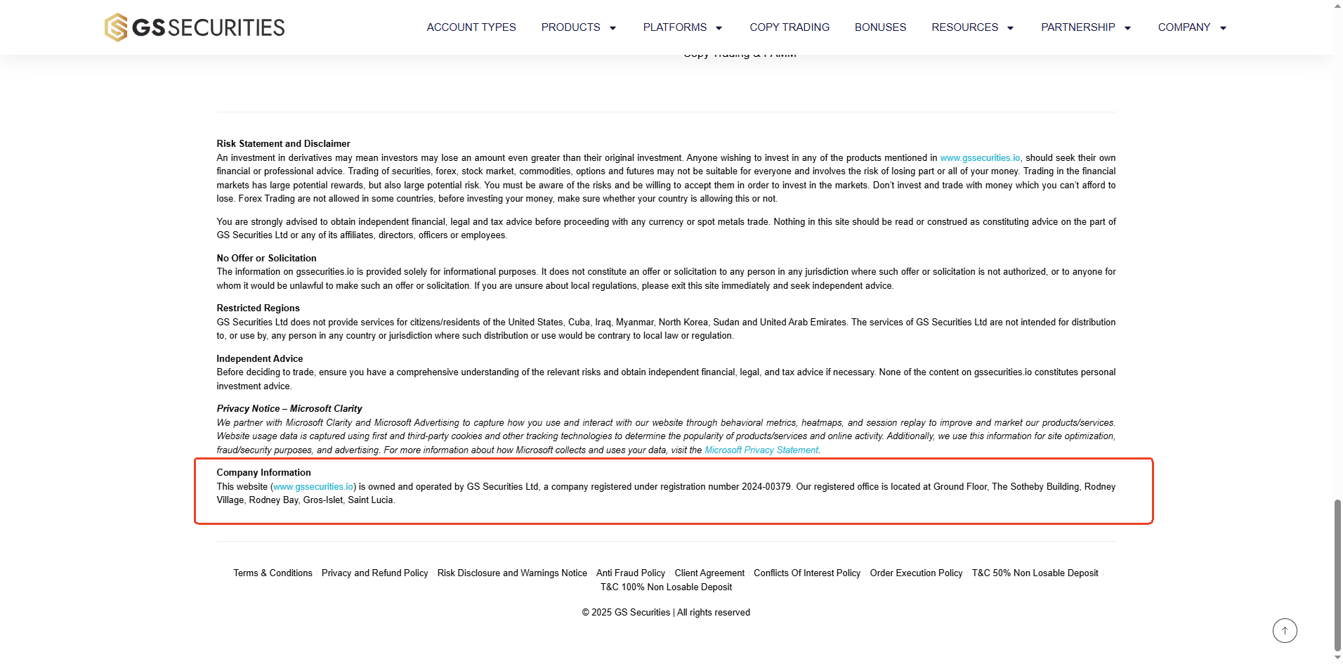 GS Securities does not claim to be licensed by any regulator; it only claims to be registered in Saint Lucia. While we can confirm that there is a company with the same name in the Saint Lucia International Financial Centre (IFC) registry, this registration only grants it International Business Company (IBC) status. This does not constitute a valid financial licence. The IFC neither regulates nor licences forex trading activities.