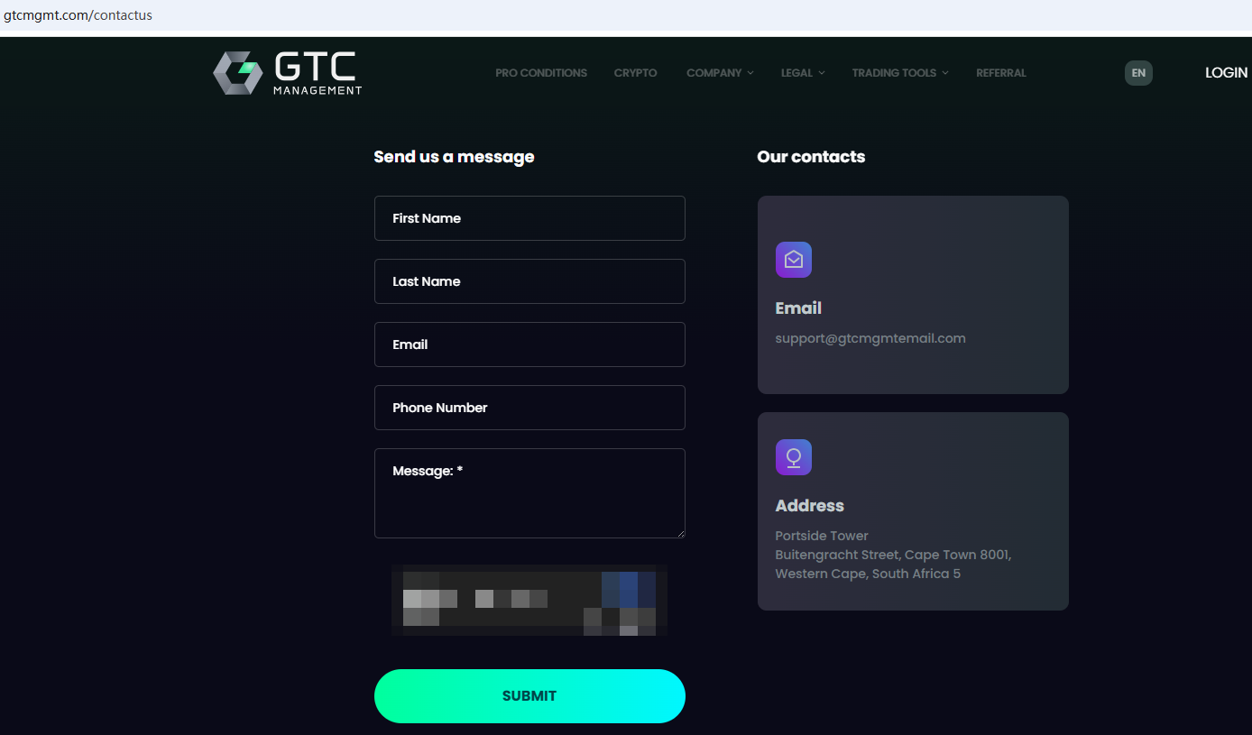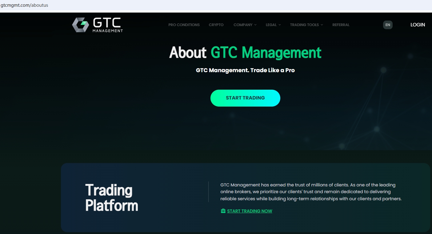 GTC Management claims to be a online broker located in South Africa, offering Crypto to traders in global markets. But it lacks detailed regulatory information. A company that offers financial services must have financial license in the country where it is located.