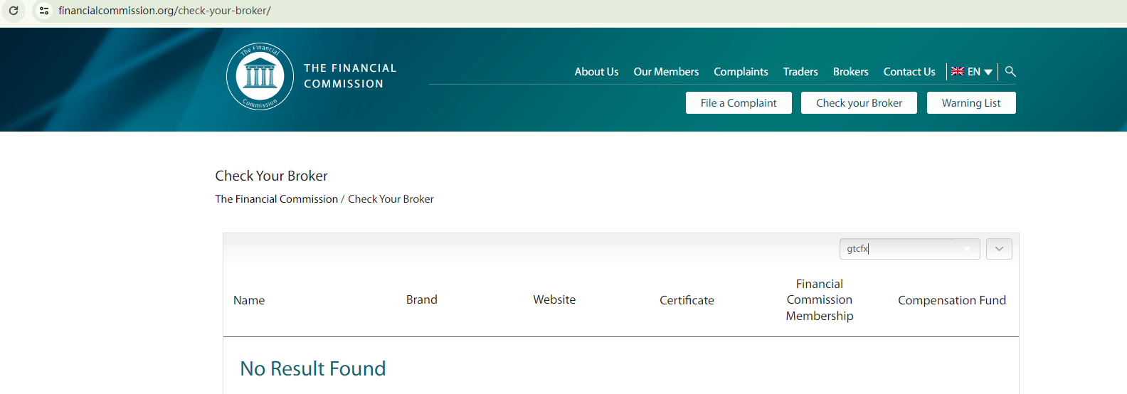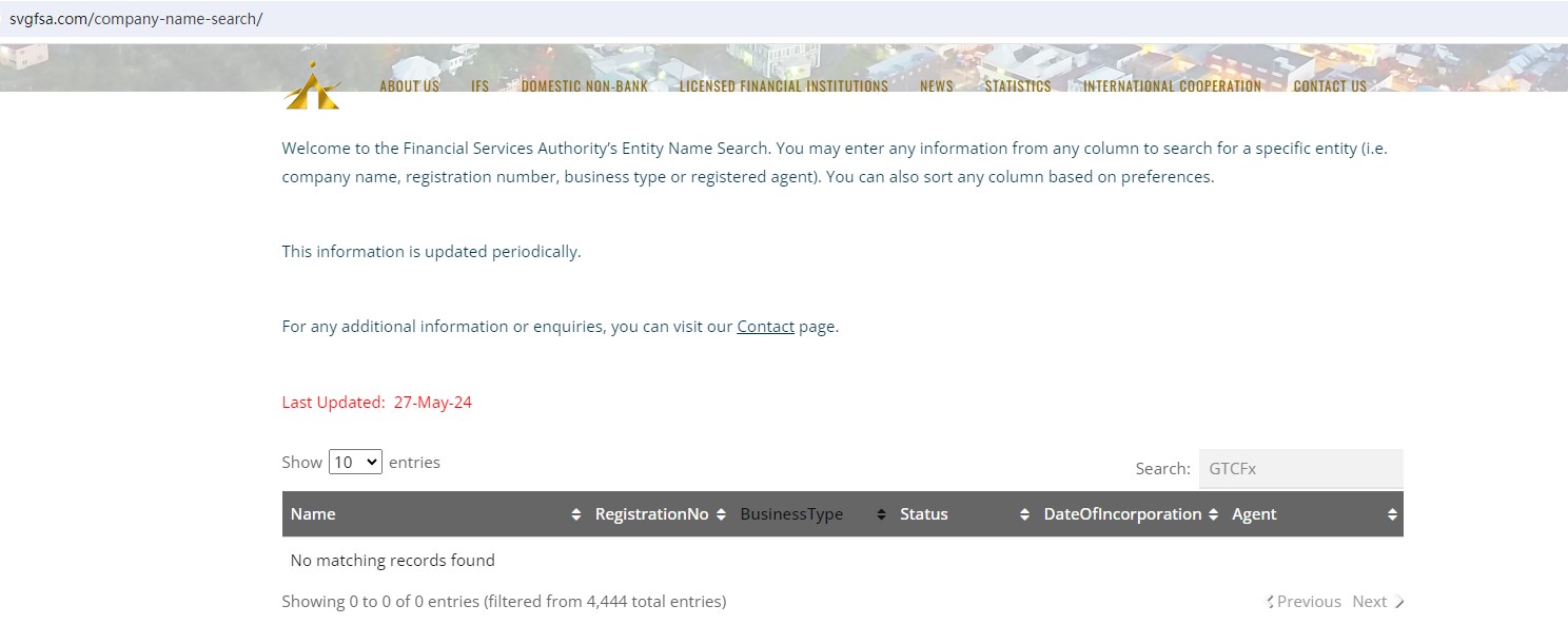 We didn't find the business registration of GTCFx with the Financial Services Authority in St. Vincent and the Grenadines(SVG FSA), an offshore authority that doesn't license financial derivative trading brokerage activities. It is also not a member of The Financial Commission (Fincom).