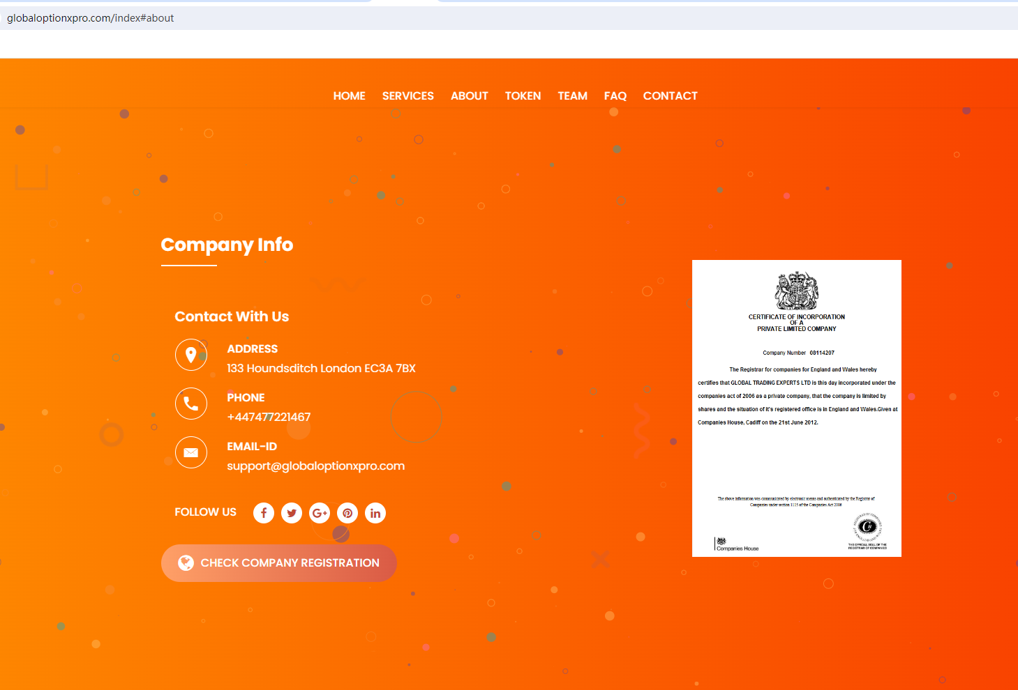 According to its website, it claims registered in the Company House (CH) with registration number: 08114207. Upon investigation, we found that the status shows "Overdue". In addition, no matching information was found in the Financial Conduct Authority (FCA). Because CH registration does not equal authorization by a financial institution, GXOTE is an illegal platform that provides financial services in the UK without a license..