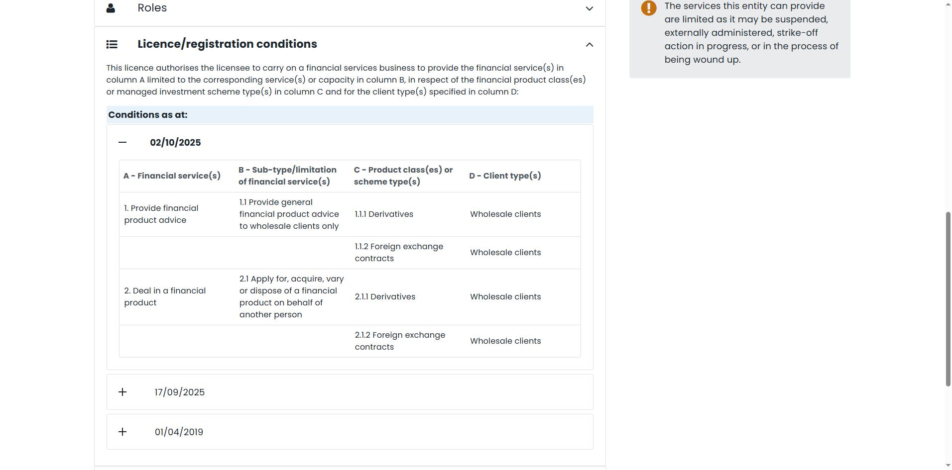 and while an Australian entity exists under ASIC, it is authorized solely for proprietary trading and advisory services, not for offering retail forex or CFD accounts.