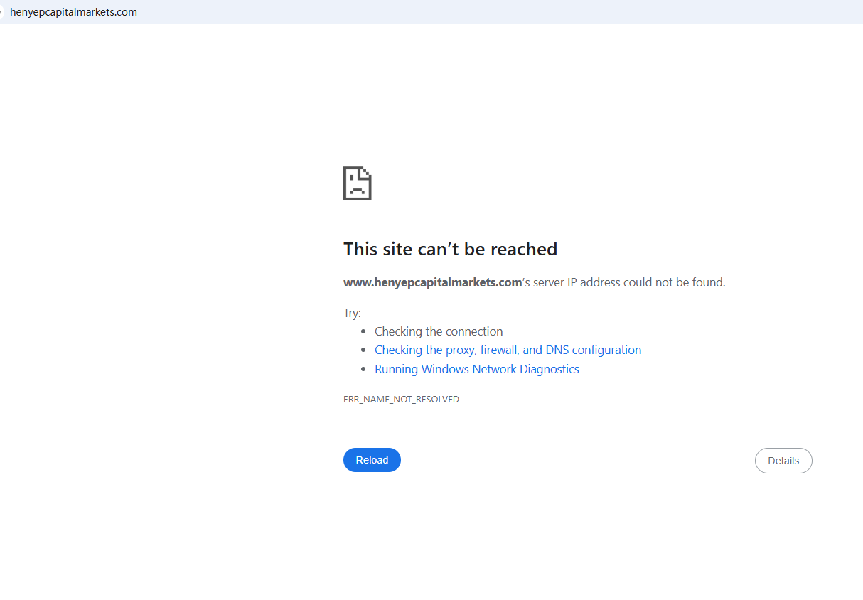 BrokersView found that the domain "https://www.henyepcapitalmarkets.com/" is currently inaccessible. This is widely regarded as a significant red flag, as the suspension of a broker's website often points to underlying regulatory or operational issues.
