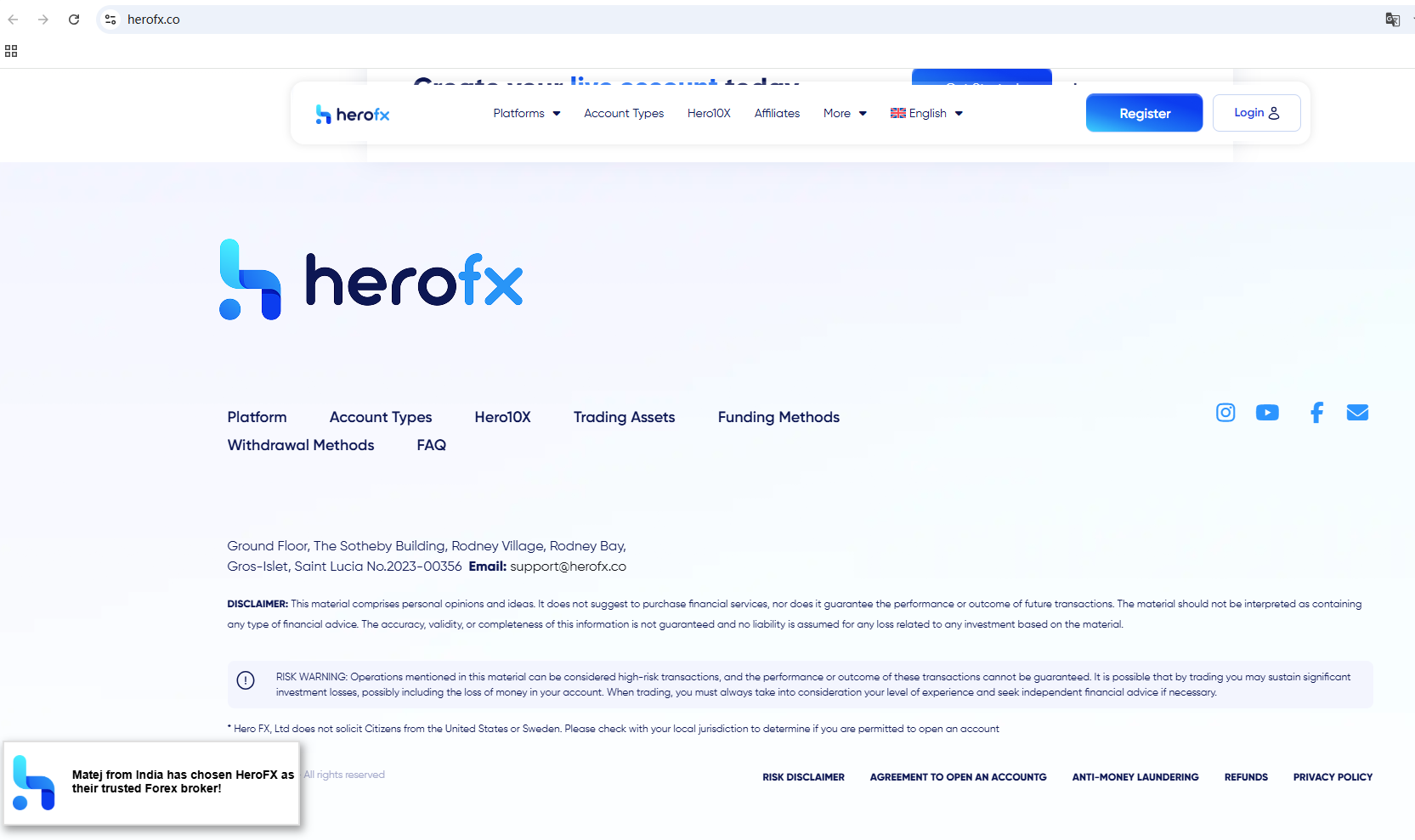 According to its website, it claims to be a reliable company, but it does not display any valid regulatory information on the website. It claims to be located in Saint Lucia, but it is well known that Saint Lucia does not have the authority to regulate foreign exchange.