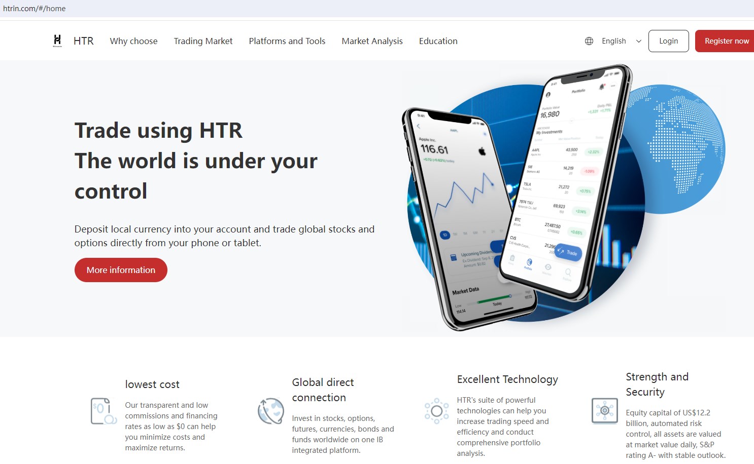 HTR is owned and operated by HTR Markets Limited, which is located in the Bahamas, and is licensed and regulated by the Securities Commission of The Bahamas (SCB), offering wide range of financial services, including Forex, Indices, Commodities, ETF, Stocks, Cryptocurrency and more instruments in global markets.