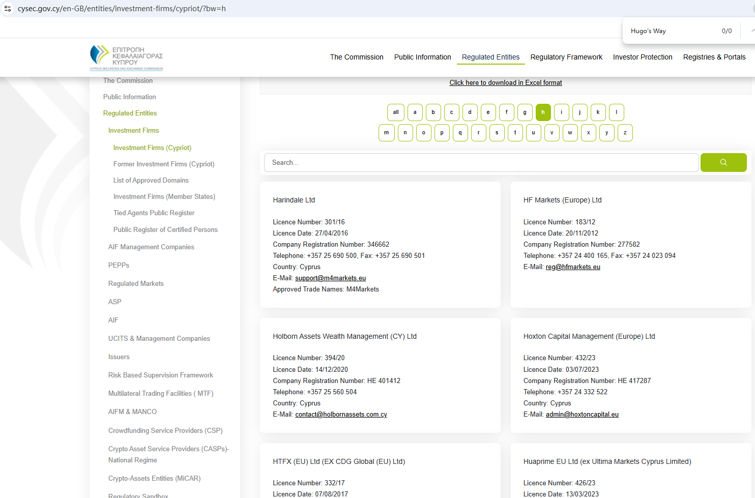 Previously, Hugos Way, also known as HugoFx, had also claimed to be registered in Saint Vincent and the Grenadines. Our searches indicate that while there was once registration information for the company with the Financial Services Authority (FSA) of Saint Vincent and the Grenadines, it has since been marked as cancelled. It is important to note that even if it were still registered, the SVG FSA does not regulate foreign exchange trading activities.