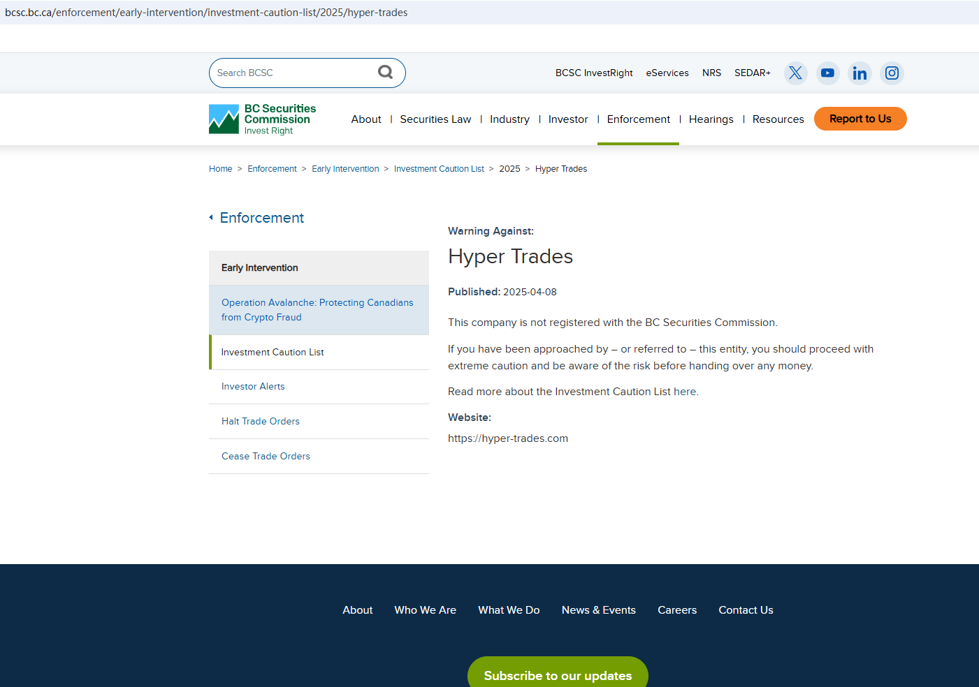 In addition, the British Columbia Securities Commission (BCSC) issued a warning that Hyper Trades was providing financial services or products without authorisation.