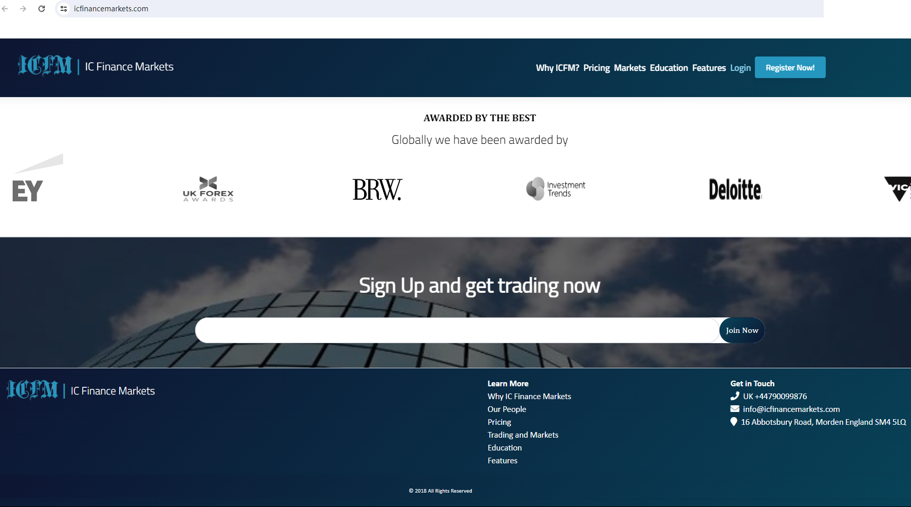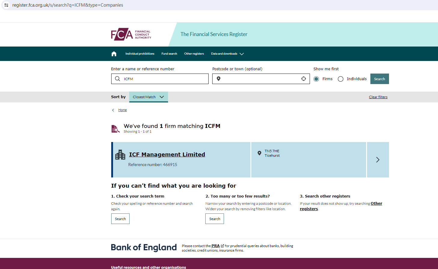 ICFM claims to be a reliable company without presenting any information about its regulation or contact. The lack of such important information may be a distinct signal of an unlicensed broker, as regulated companies always present their accreditations and licenses in a prominent position. It is a red flag. In addition, it is located in the UK. Upon investigation, no matching information was found in the Financial Conduct Authority (FCA).