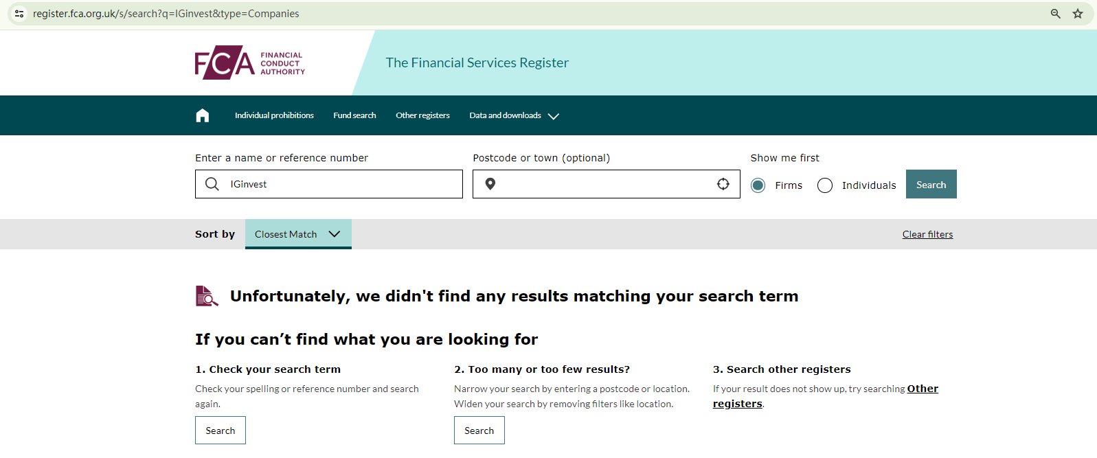 There are no regulatory details available on the website of IGinvest to support its legitimacy in the forex market, a scam indicator.Given that it provides a phone number starting with +44, suggesting a potential office in the UK, we conducted a search in the register of the Financial Conduct Authority (FCA). However, no matching records returned, indicating that it is not regulated by the FCA.Adding to the concerns, the British Columbia Securities Commission (BCSC) issued a warning against IGinvest, stating that this broker is not registered to trade in, or advise on, securities or derivatives in BC.In essence, IGinvest is not regulated by any governing body. Entrusting it with investors' funds is highly risky, as there are no legal protections in place to safeguard the funds.IGinvest appears to be a scam.