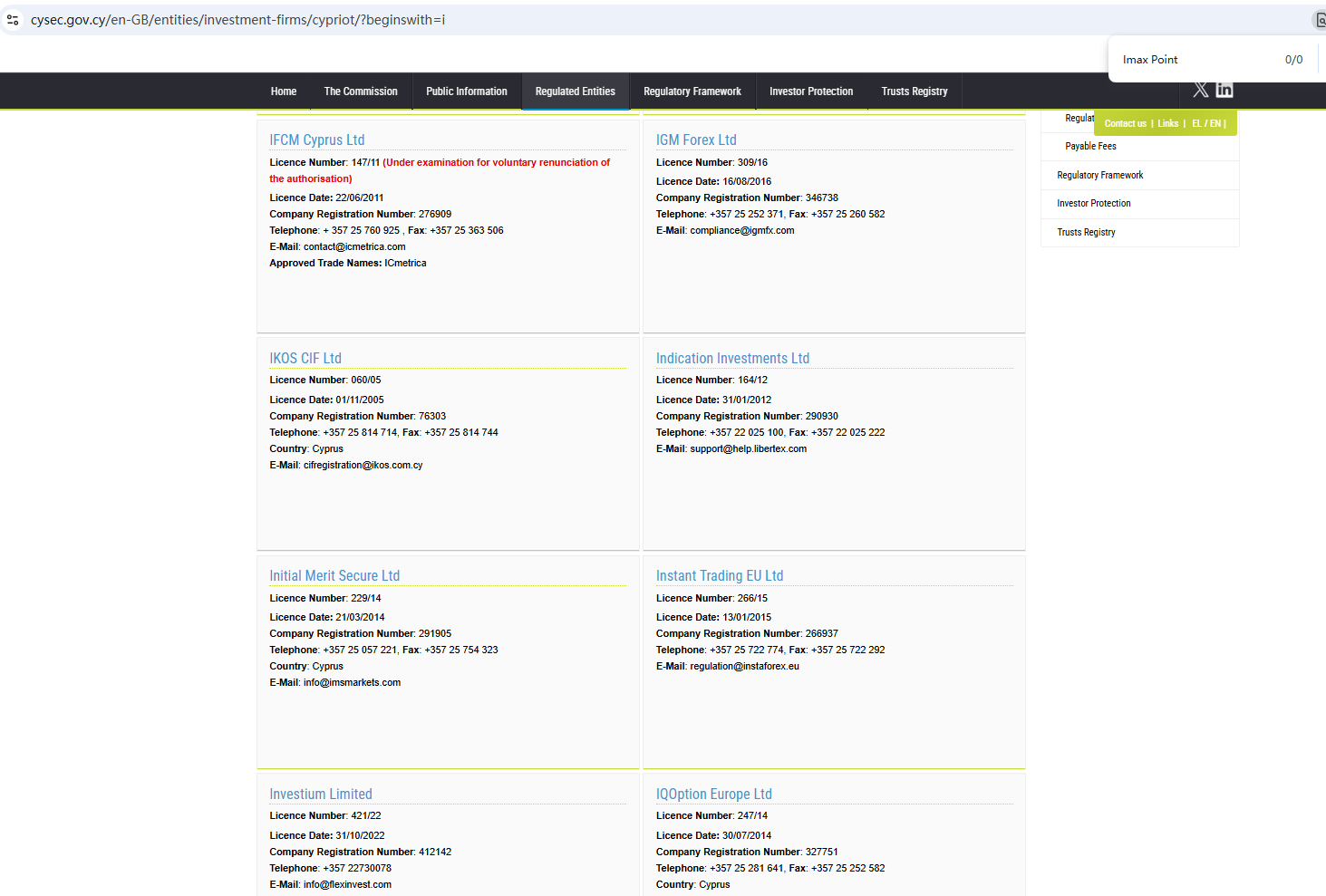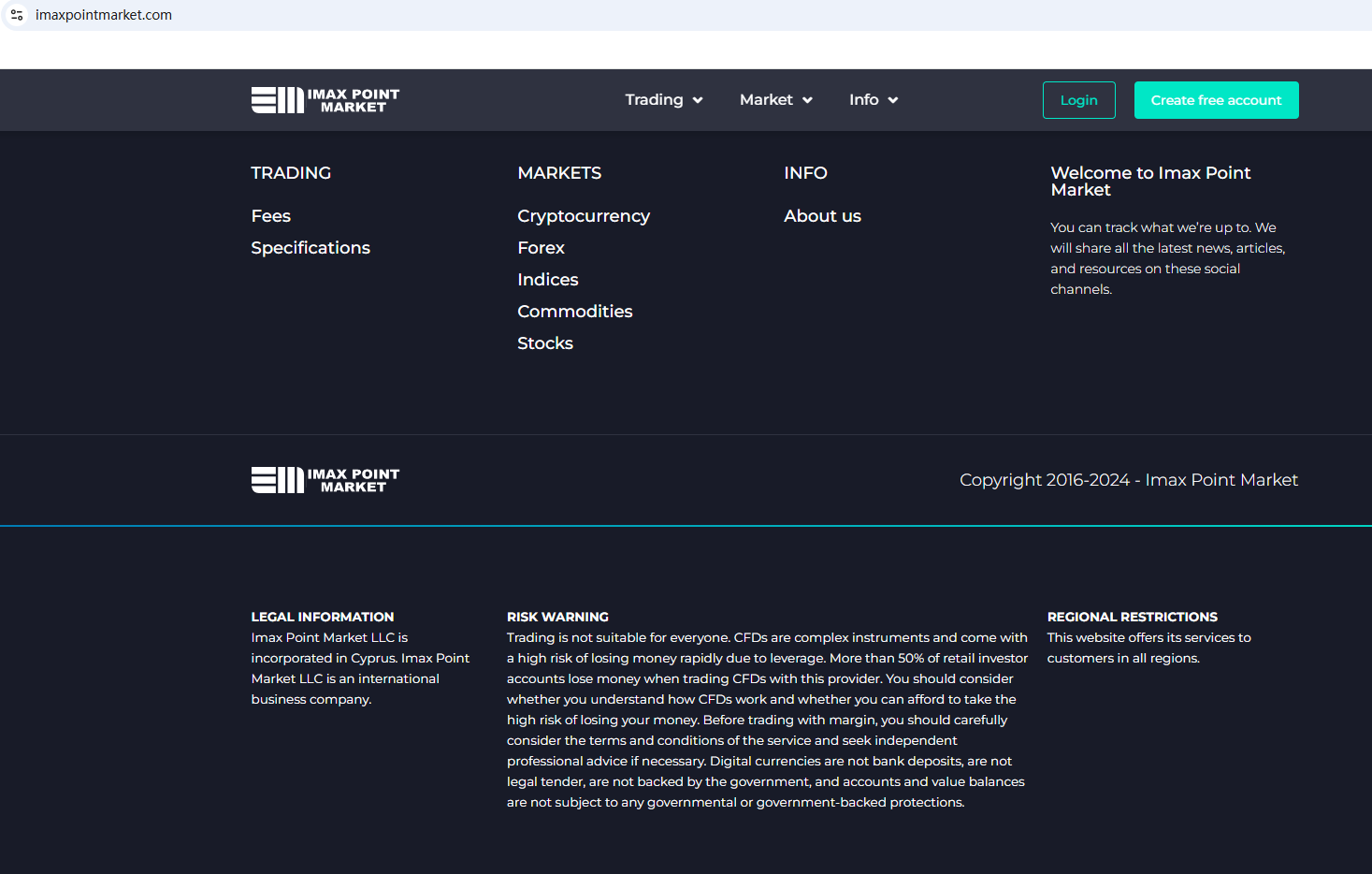 According to its website, it claims incorporated in Cyprus. Upon investigation, no matching information was found in the Cyprus Securities and Exchange Commission (CySEC).In essence, Imax Point Market is not regulated by any governing body. Entrusting it with investors' funds is highly risky, as there are no legal protections in place to safeguard the funds.Imax Point Market appears to be a scam.