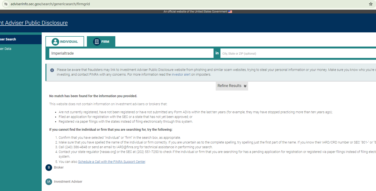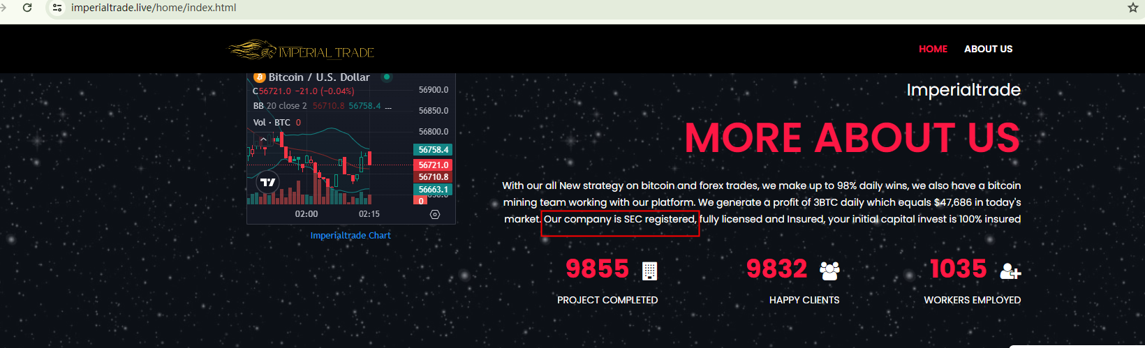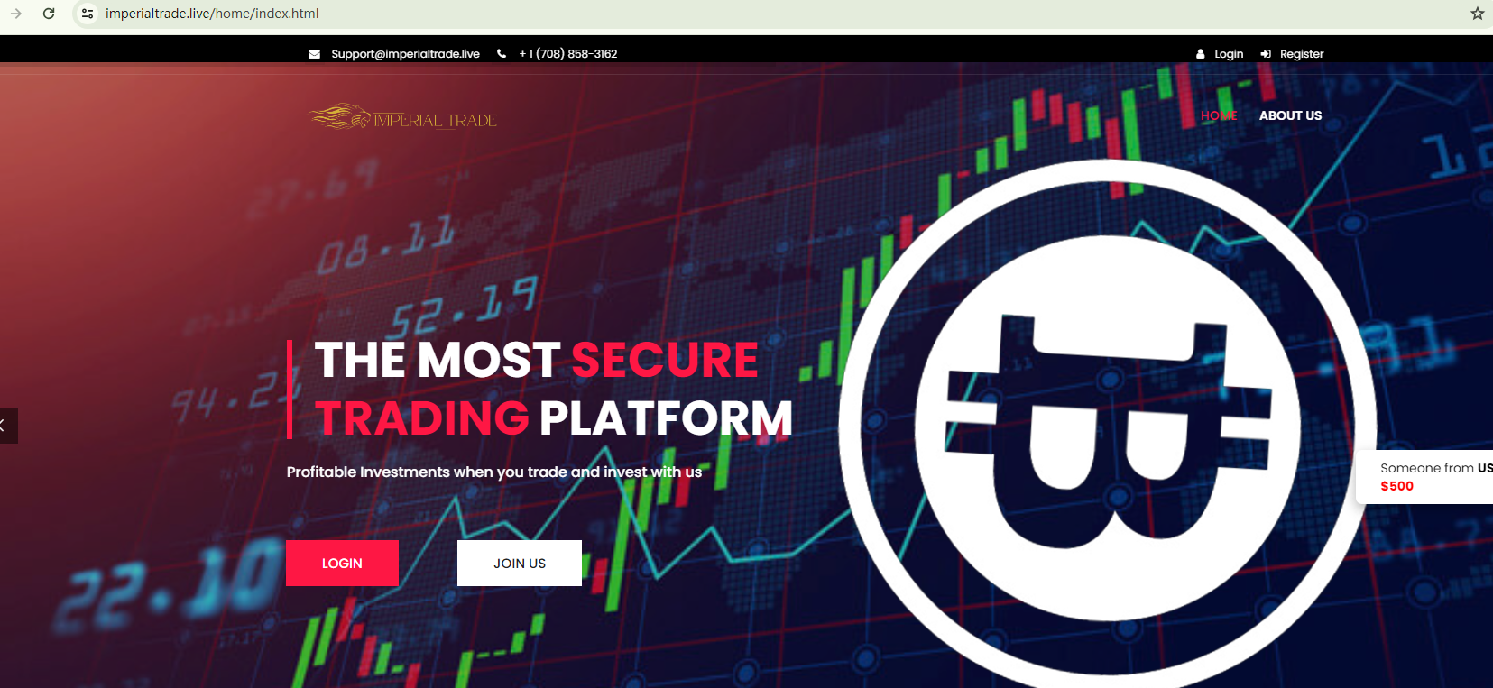 Unknow operators providing unlicensed financial services through the website imperialtrade.live. This platform claims to be regulated by the Commodity Futures Trading Commission (CFTC) and the U.S. Securities and Exchange Commission (SEC), but fails to provide any specific details to support these assertions. Such vague and insufficient regulatory claims raise serious concerns.