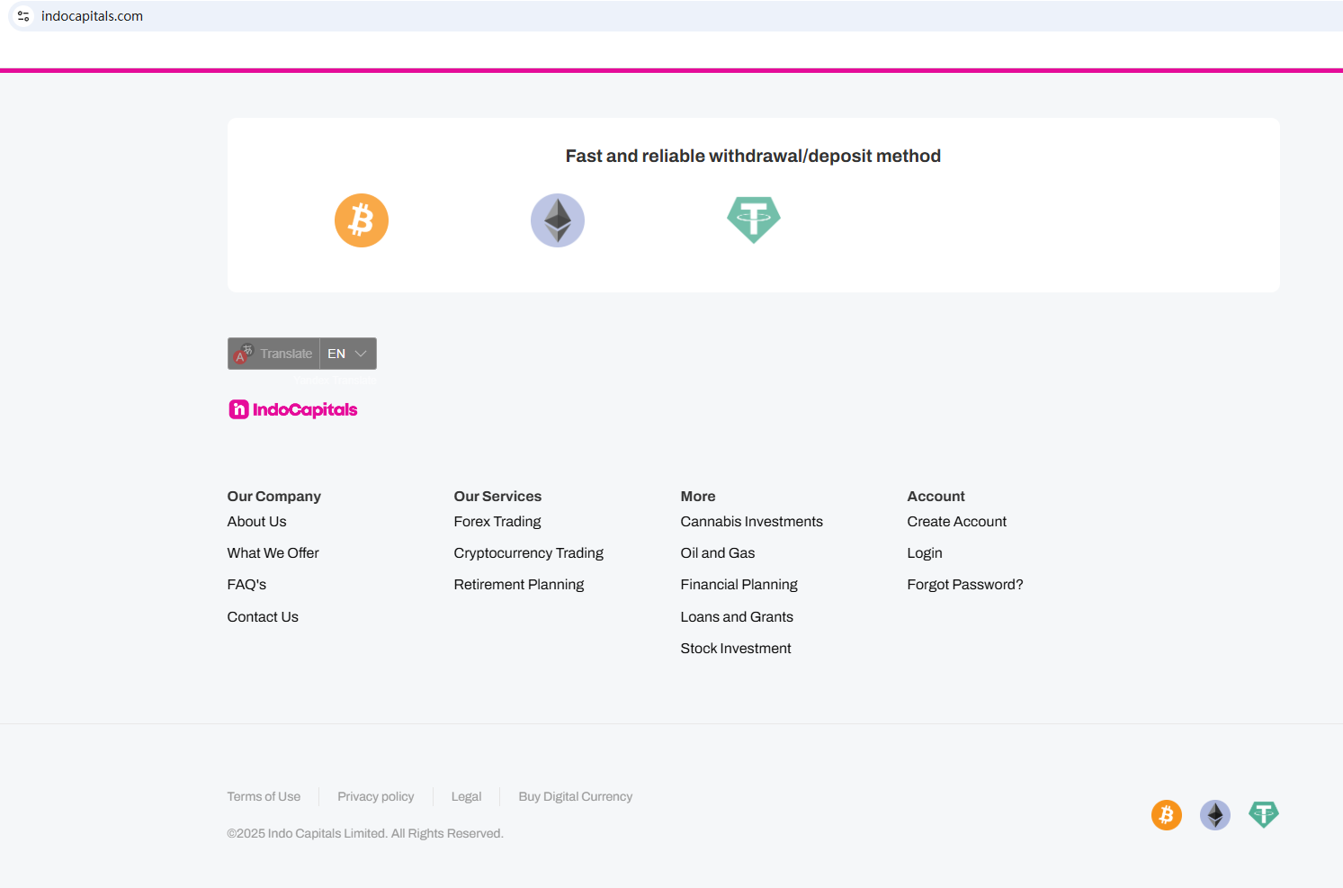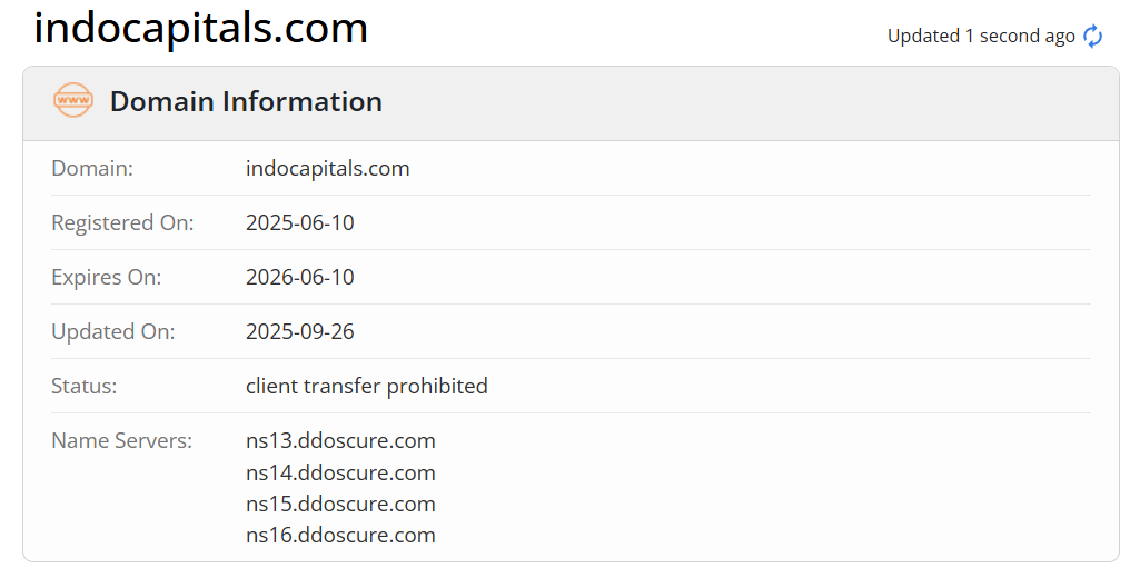 According to its website, the company claims to have been founded in 2014 with offices in the UK. However, our investigation revealed that its domain was only created in 2025, clearly indicating that the information displayed on its website is inconsistent with the facts. In addition, the Financial Conduct Authority (FCA) issued a warning regarding INDOCAPITALS, suspecting that this company may be offering financial services or products without the necessary authorization.