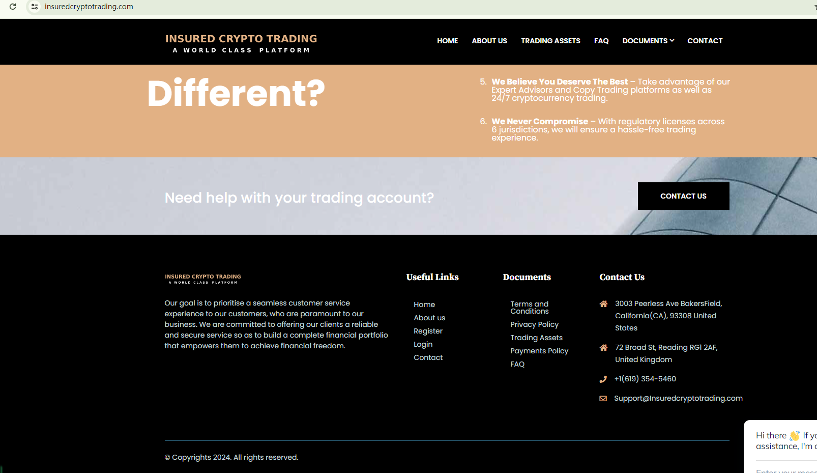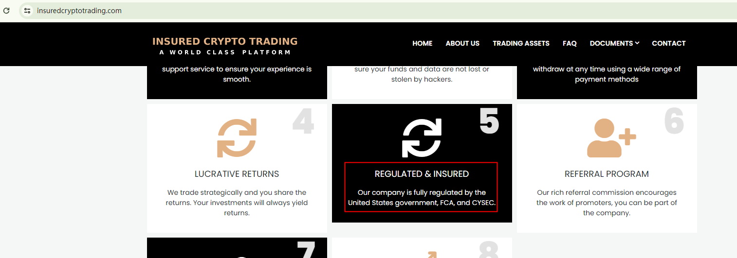 In essence, INSURED CRYPTO TRADING is not regulated by any governing body. Entrusting it with investors' funds is highly risky, as there are no legal protections in place to safeguard the funds.