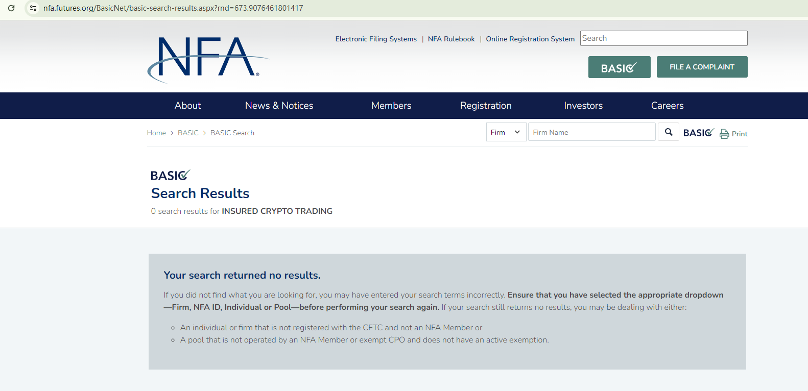 What's more, INSURED CRYPTO TRADING purports to have an office in the US. For it to be a legitimate forex broker there, it is required to be registered as a member of the National Futures Association (NFA). But, it failed.