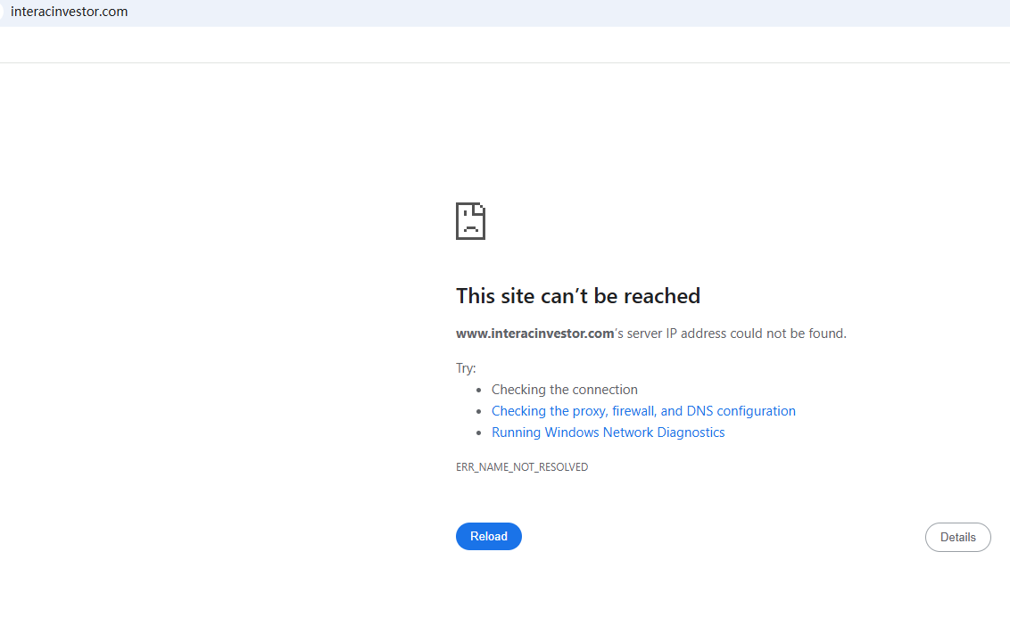 BrokersView found that the domains "https://www.interacinvestor.com/; https://www.interinvestor.online/; https://www.interac-investor.com/" are currently inaccessible. This is widely regarded as a significant red flag, as the suspension of a broker's website often points to underlying regulatory or operational issues.