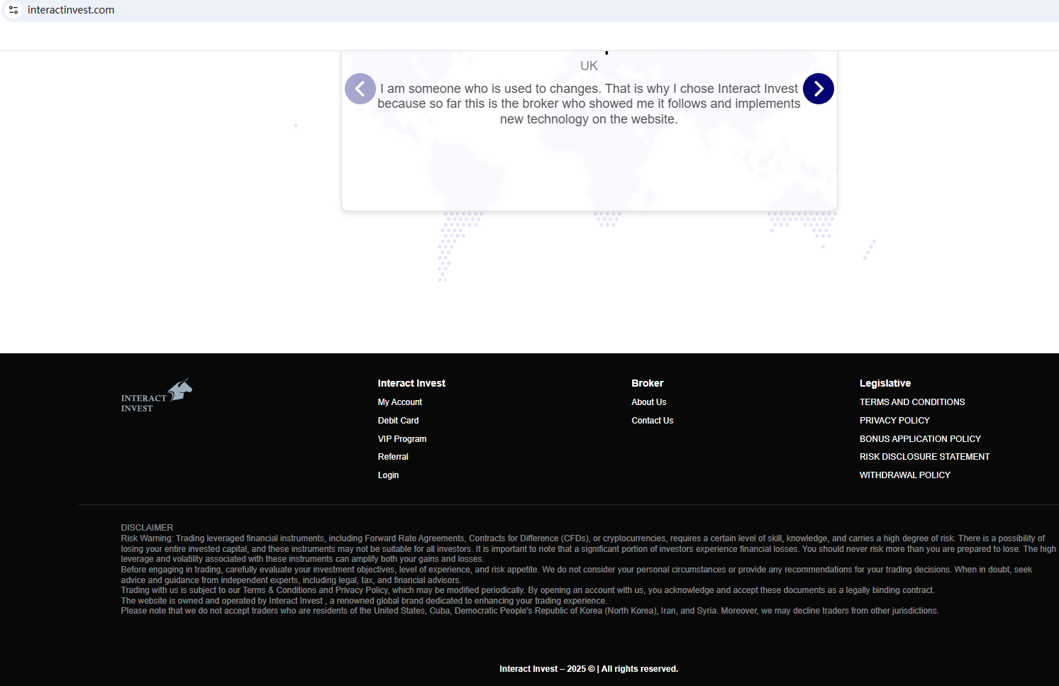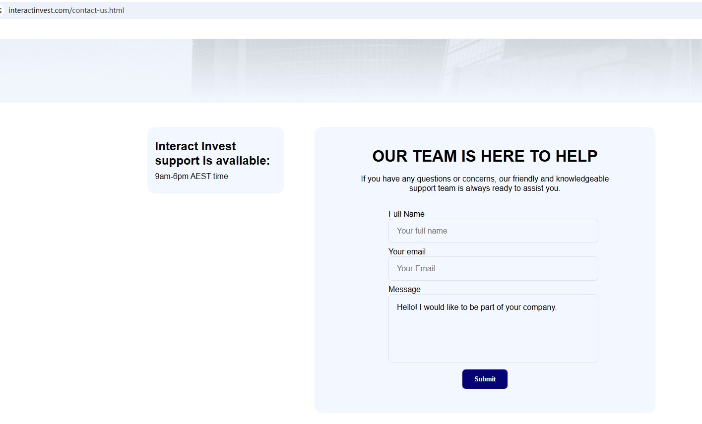 According to its website, it claims to be a reliable company, but it does not display any valid regulatory information on its website. An inquiry revealed that the Australian Securities & Investments Commission (ASIC) issued a warning against Interact Invest, believing this company might be providing financial services or products without proper authorization.