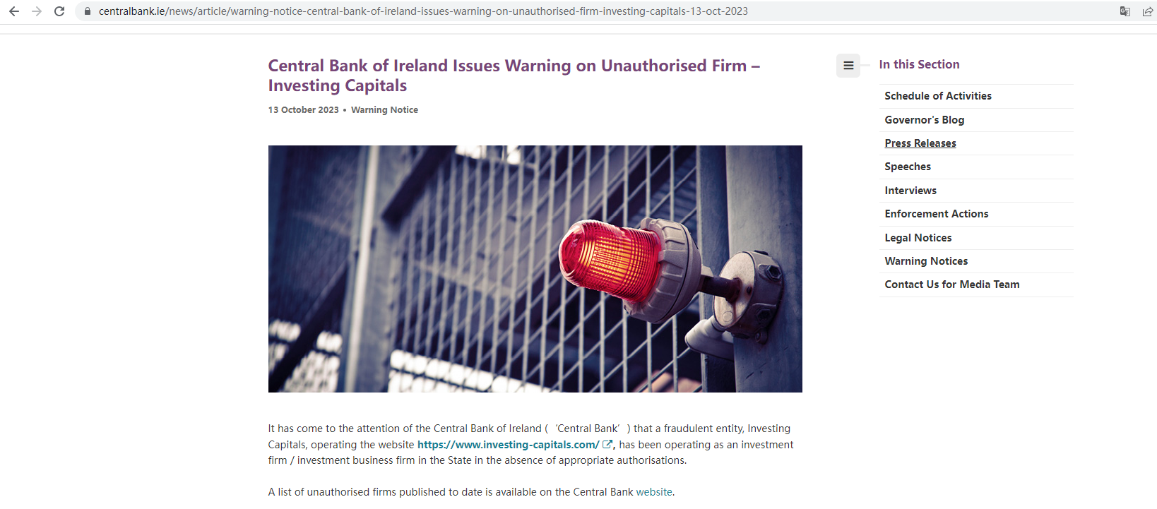 ANSWER No, Investing Capitals is not licensed in Spain. What's worse, the fact that is is a clone firm exposed its fraudulent nature.BrokersView noticed that the UK financial watchdog, Financial Conduct Authority (FCA) has launched an investigation into Investing Capitals and confirmed that it is a clone of an FCA-authorized company. Thus, the financial regulatory body issued a warning against Investing Capitals, published the details of this case, and warned the public of this impersonation scam. The full warning can be accessed here.Therefore, we strongly suggest you avoid Investing Capitals. Once your funds and personal information enter the platform, there are no rules to protect them from fraud and theft. It would be financially and personally devastating. To safeguard investors' interests, it is advisable to choose a fully regulated broker.