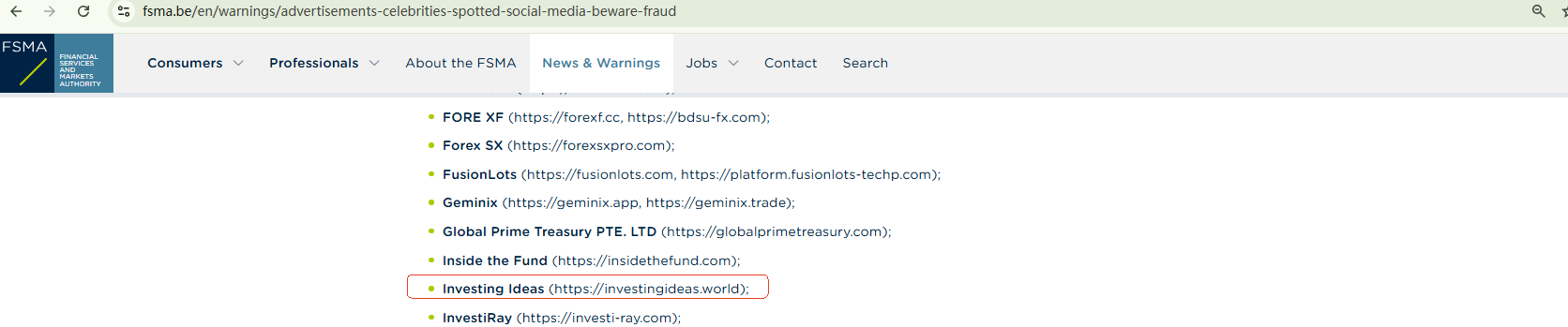 Investing Ideas doesn't provide any licensing details to support its legitimacy. Typically, regulated brokers display such information on their website to demonstrate regulatory compliance. Additionally, the broker does not disclose its location, leaving investors unaware of their real location and hindering the ability to find them if any issues arise.More critically, the Autorité des Marchés Financiers (AMF) has added Investing Ideas to its warning list for being an unauthorized company engaging in forex activities.In essence, Investing Ideas is not regulated by any governing body. Entrusting it with investors' funds is highly risky, as there are no legal protections in place to safeguard the funds.Investing Ideas appears to be a scam.