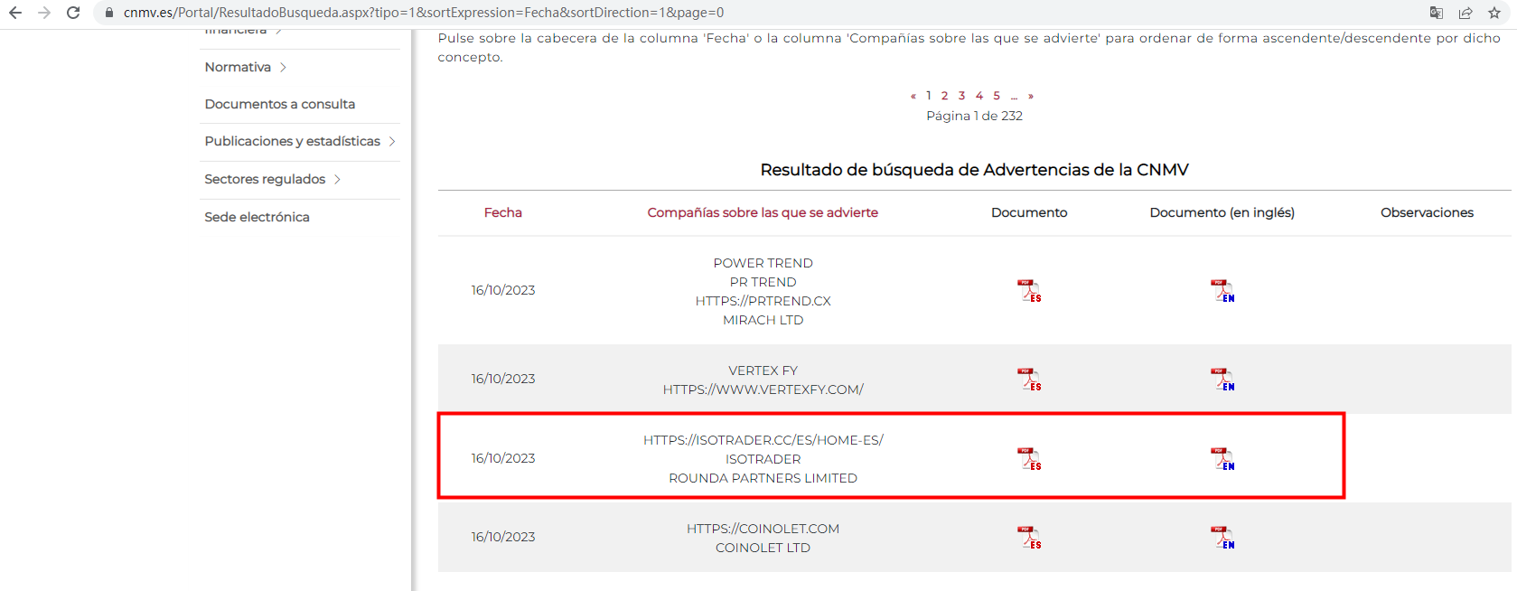 • Oct 15, 2023 The CNMV issued a warning against ISOTRADER