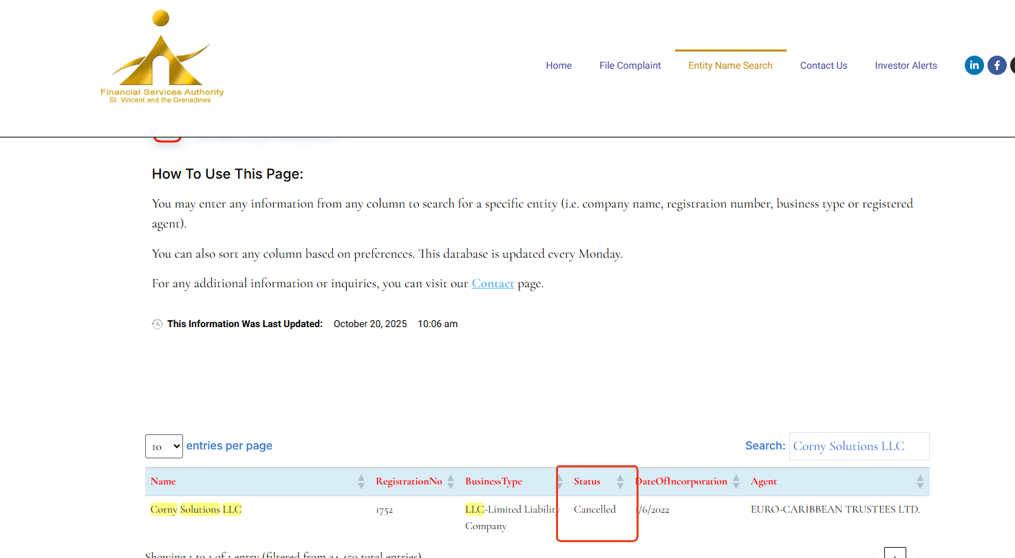 We found that the ISOTRADER's domain is currently inaccessible. This is widely regarded as a significant red flag, as the suspension of a broker's website often points to underlying regulatory or operational issues. According to our previous investigation, ISOTRADER claimed to be only registered with the Saint Vincent FSA and never held any valid license from a recognized financial regulatory authority, meaning its financial activities were unregulated and carried a high risk of fraud. Furthermore, its registration status in Saint Vincent is now shown as "cancelled," indicating that the entity has ceased operations.