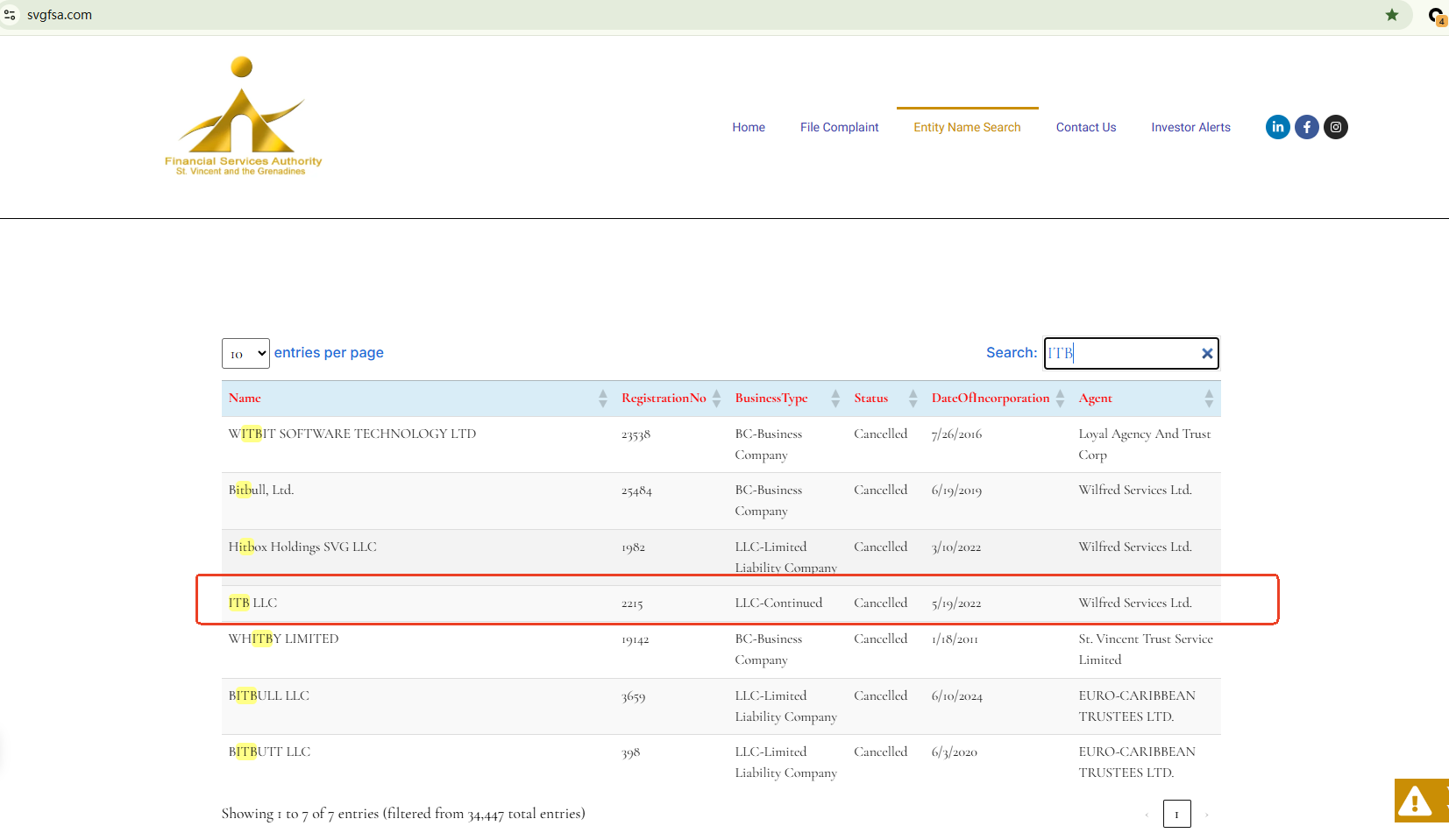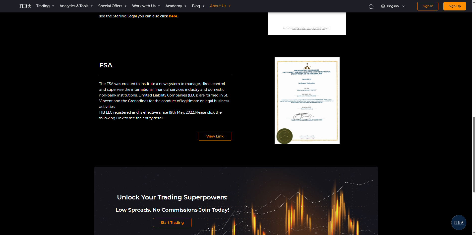 ITB only claims to be registered by FSA of Saint Vincent and the Grenadines. But FSA of Saint Vincent and the Grenadines doesn't regulate forex or issue forex licenses, so having registration does not mean being authorized to provide financial services. The truth is that ITB is not under valid regulation by any regulators to do forex. Investors' funds in this broker are unsafe and cannot be protected by any law. Therefore, it is a scam.