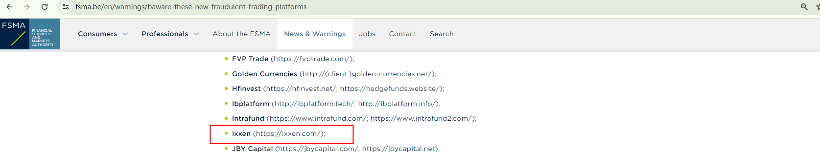 Ixxen claims to be a reliable company without presenting any information about its regulation.