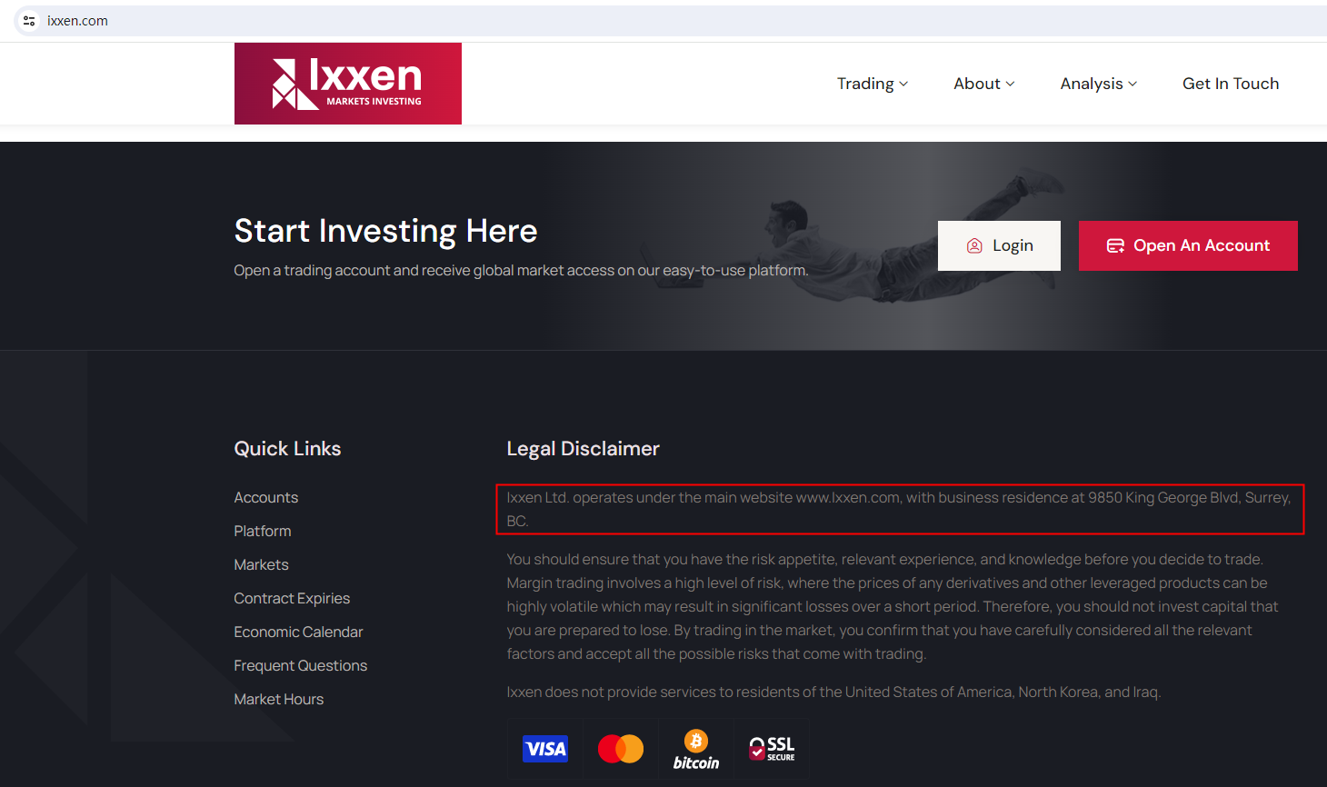 Ixxen claims to be a reliable company without presenting any information about its regulation.Ixxen locates in Canada, we searched the Investment Industry Regulatory Organization of Canada (IIROC) but found no matching results.The truth is that Ixxen is not regulated by any regulators. Letting it hold or control investors' money is unsafe, and the money can not be protected by any laws.Ixxen is a scam.