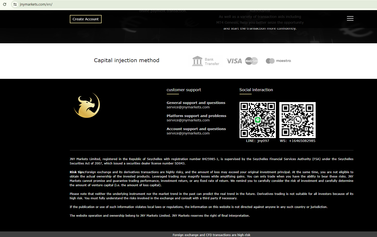 Nonetheless, our investigation into the FSA Seychelles register contradicts these claims, as we found no entries corresponding to this company. This discrepancy raises questions about the legitimacy of JNY Markets.