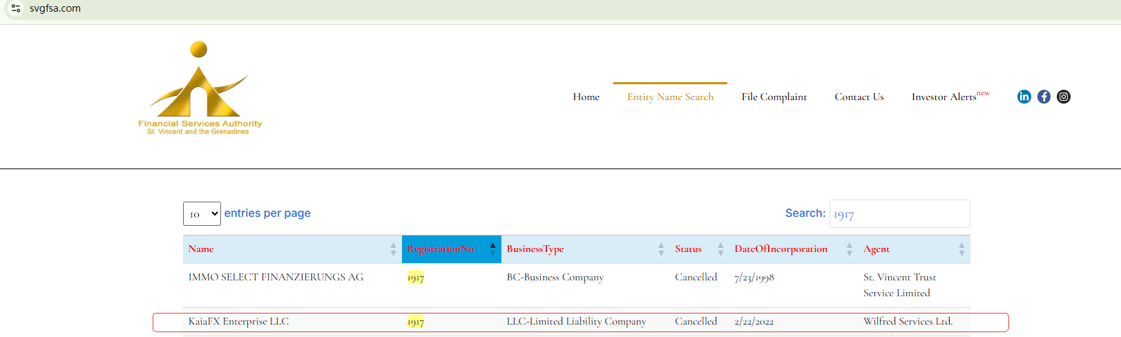 ANSWER KaiaFX is not a regulated platform and thus we strongly suggest you avoid dealing with this non-regulated broker.KaiaFX claims that it is operated by KaiaFX Enterprise LLC, a company registered with the Financial Services Authority of St. Vincent and the Grenadines (SVG FSA) under registration number 1917. While we did find corresponding records on the SVG FSA register, it is critical to note that the offshore financial watchdog has explicitly stated that it neither issues licenses for forex trading or brokerage nor regulates entities involved in such activities. Consequently, KaiaFX remains unsupervised by the relevant regulatory body.In conclusion, investors, if using KaiaFX, are exposed to significant risks, such as financial losses and identity theft. Without regulatory oversight, there are no rules in place to safeguard investors' interests. Therefore, we highly recommend steering clear of unregulated brokers like KaiaFX and instead choose a fully regulated one.