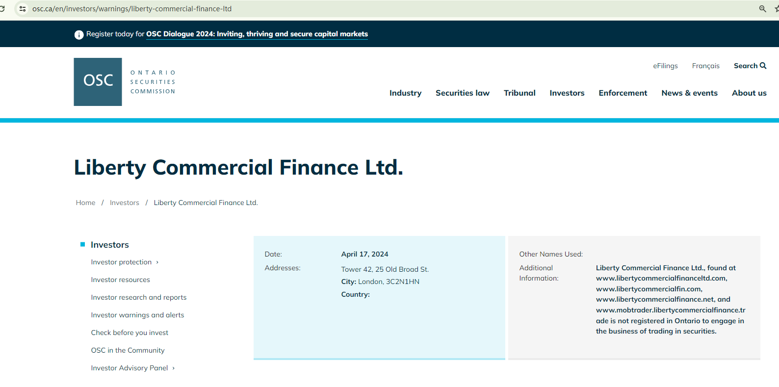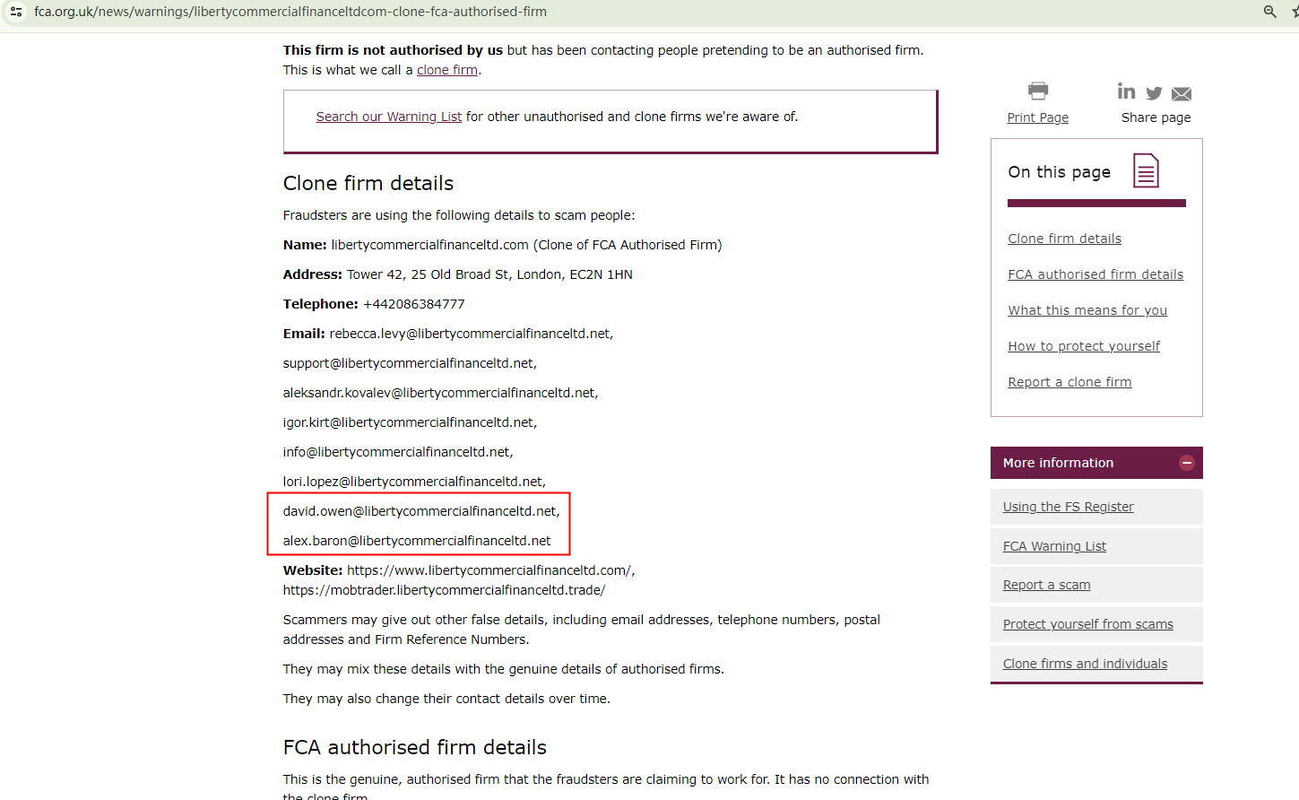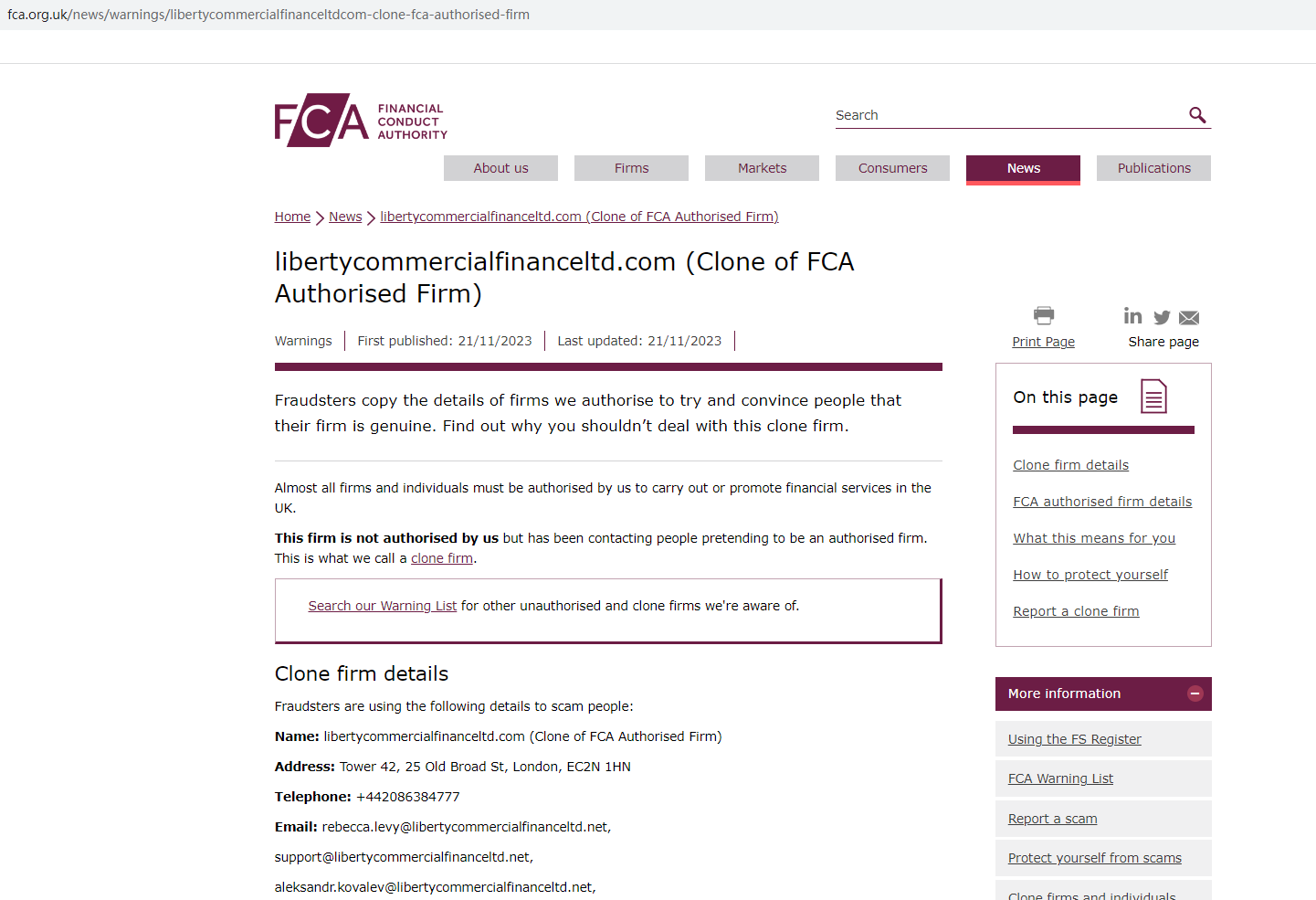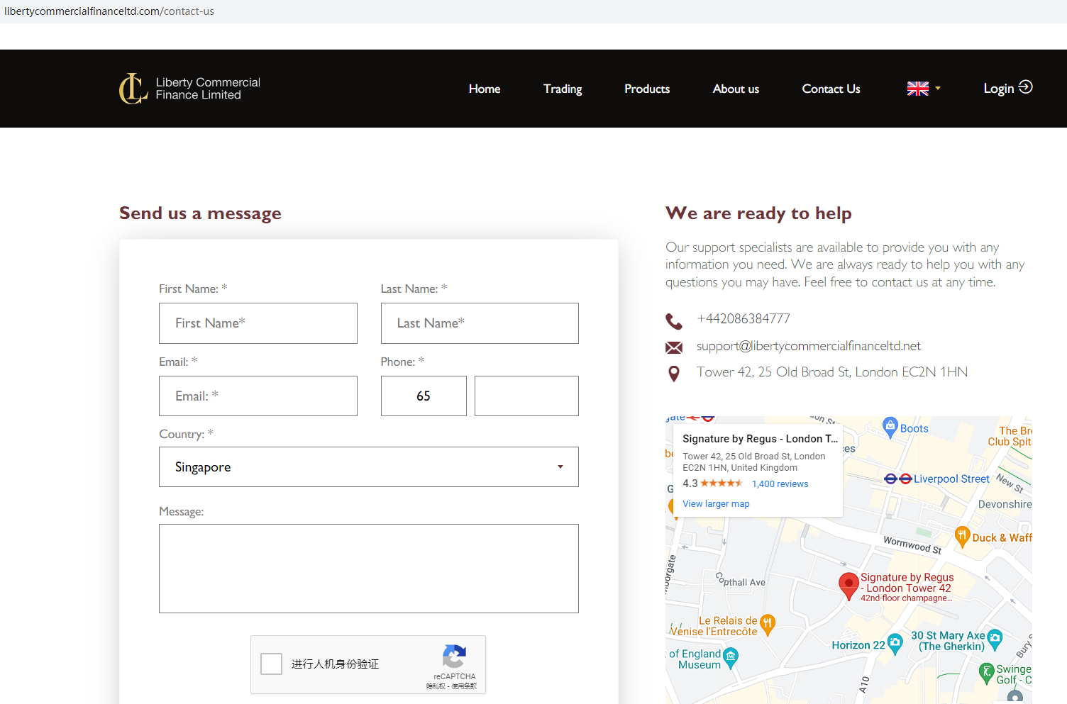 According to its website (libertycommercialfinanceltd.com), it is located in the UK. However, our investigation revealed that the Financial Conduct Authority (FCA) has issued a warning against it, identifying this broker as a clone of an FCA-authorized firm, Liberty Commercial Finance Limited.