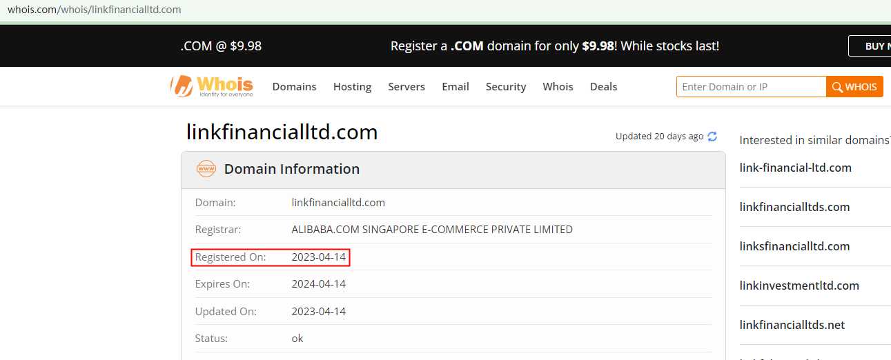 While Link Financial Limited claims to have been founded in 2001, its domain name, linkfinancialltd.com, was first registered in April 2023. This discrepancy raises a red flag.