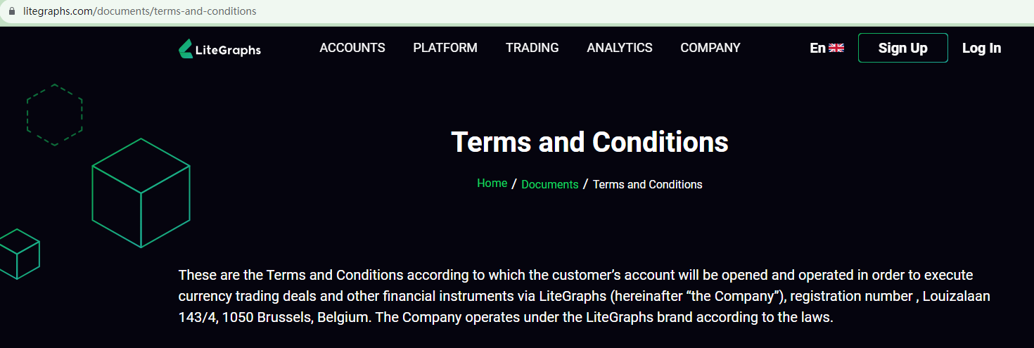 LiteGraphs doesn't provide any information about its real operator. On its website, it only says this company, allegedly located in Belgium, is operating under the trading name LiteGraphs. The lack of transparency raises significant concerns about its credibility.Despite claims of being based in Belgium, a search in the register of the Financial Services and Markets Authority (FSMA) did not yield any corresponding results. This indicates that LiteGraphs has not obtained the required authorization from this financial regulator. It's worth noting that the FSMA implemented a ban from 18 August 2016 on the distribution of over-the-counter (OTC) derivatives, including Forex, CFDs, and Binary options among Belgian retail clients. This ban should be considered when choosing a Belgian Forex broker.In essence, LiteGraphs is not regulated by any governing body, which poses a high risk for investors. There are no legal protections in place to safeguard the funds entrusted to this broker.Given these factors, it is reasonable to conclude that LiteGraphs is unequivocally a scam.