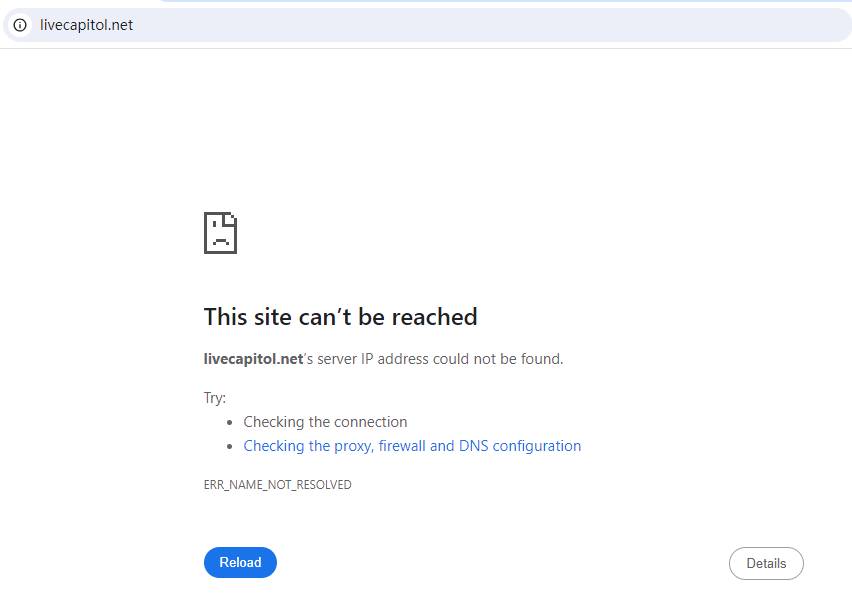 BrokersView found the domain "https://livecapitol.net/" is not working, as most probably it was suspended and it is always a bad sign when broker's website is suspended.