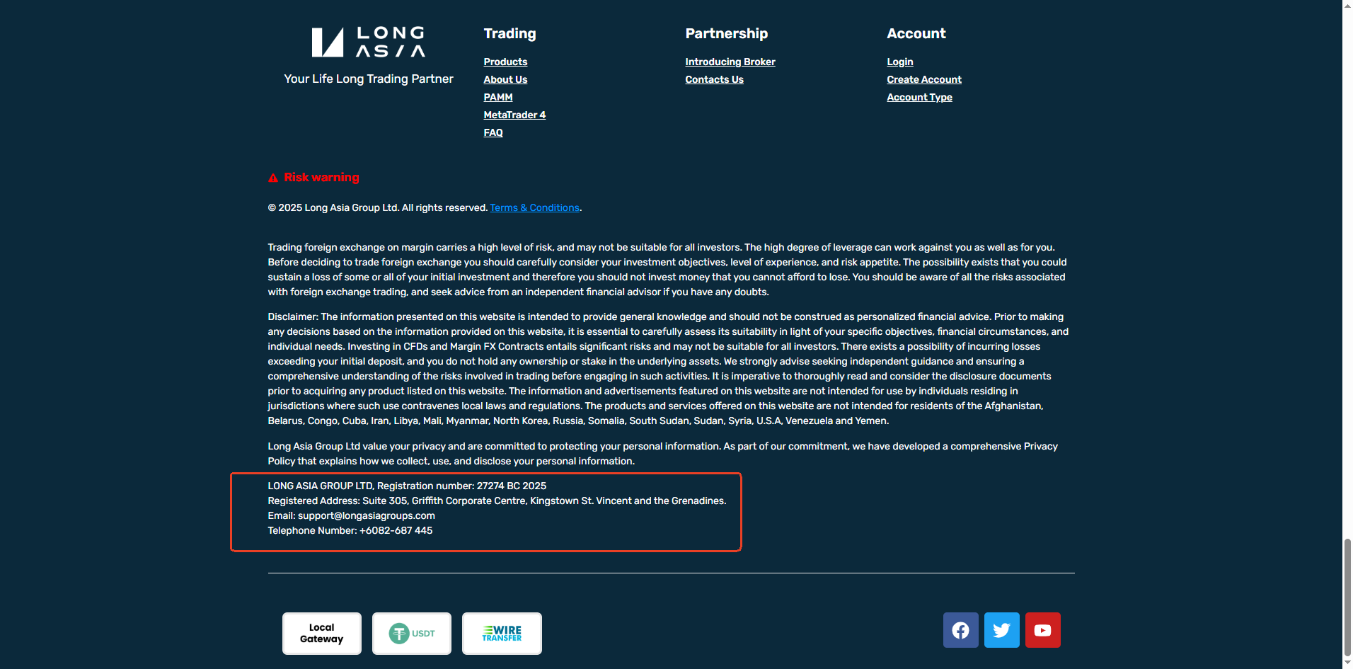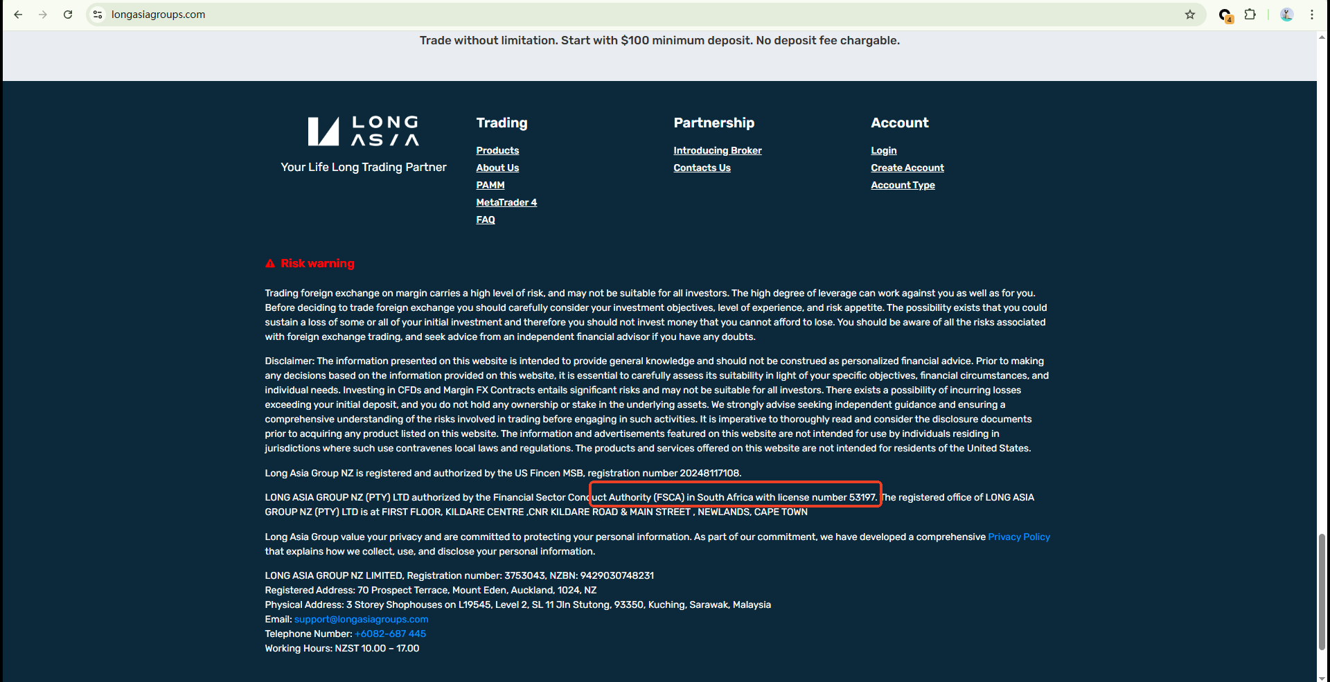 However, we have since discovered that the licensed entity on the FSCA register has changed. Additionally, Long Asia has removed this regulatory information from its official website. This raises concerns that the authorization may have been withdrawn or revoked.