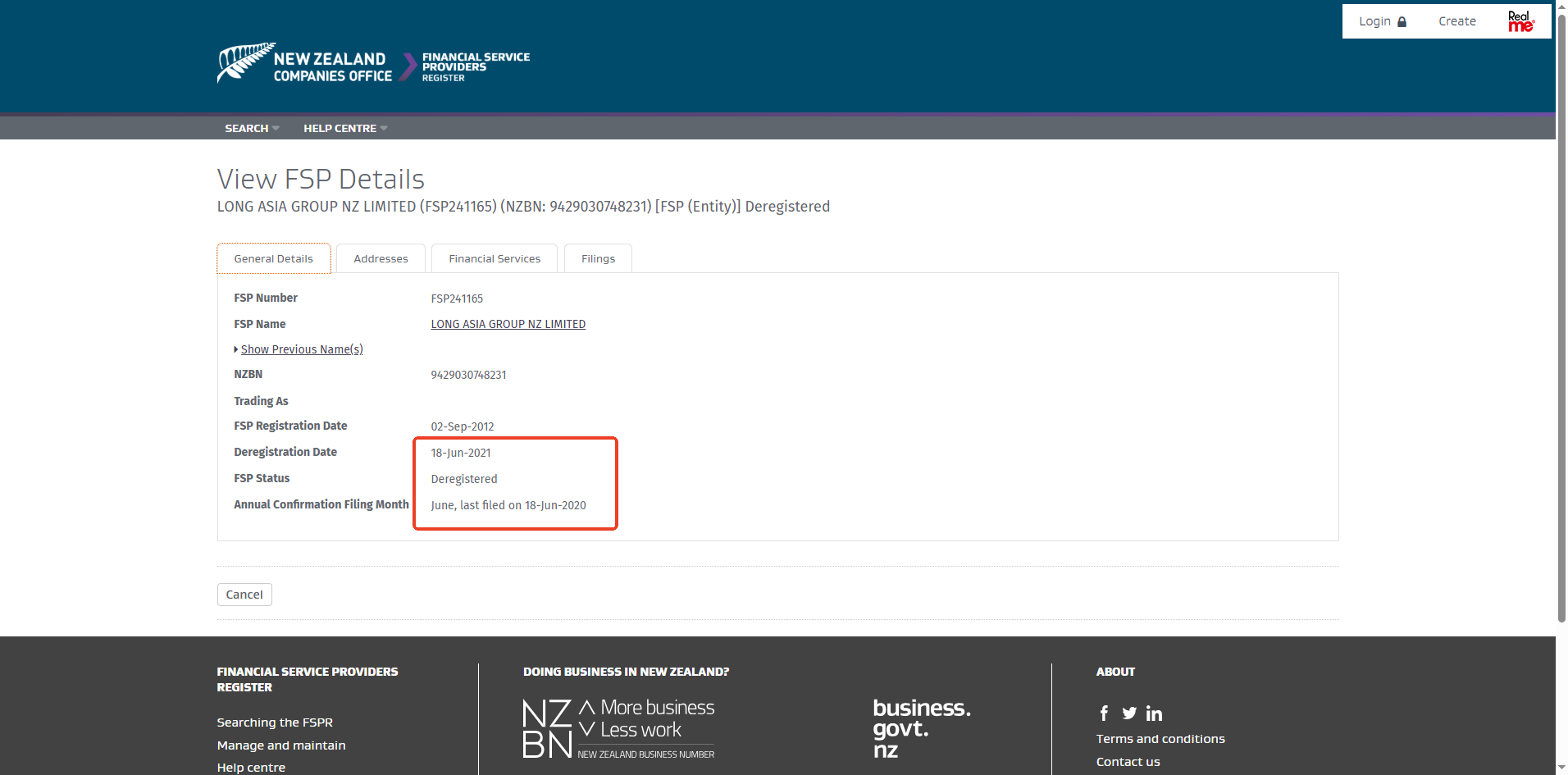 Long Asia previously also claimed to be registered with New Zealand’s Financial Service Providers (FSP) Register. Upon verification, we found that the entity is now listed as deregistered.