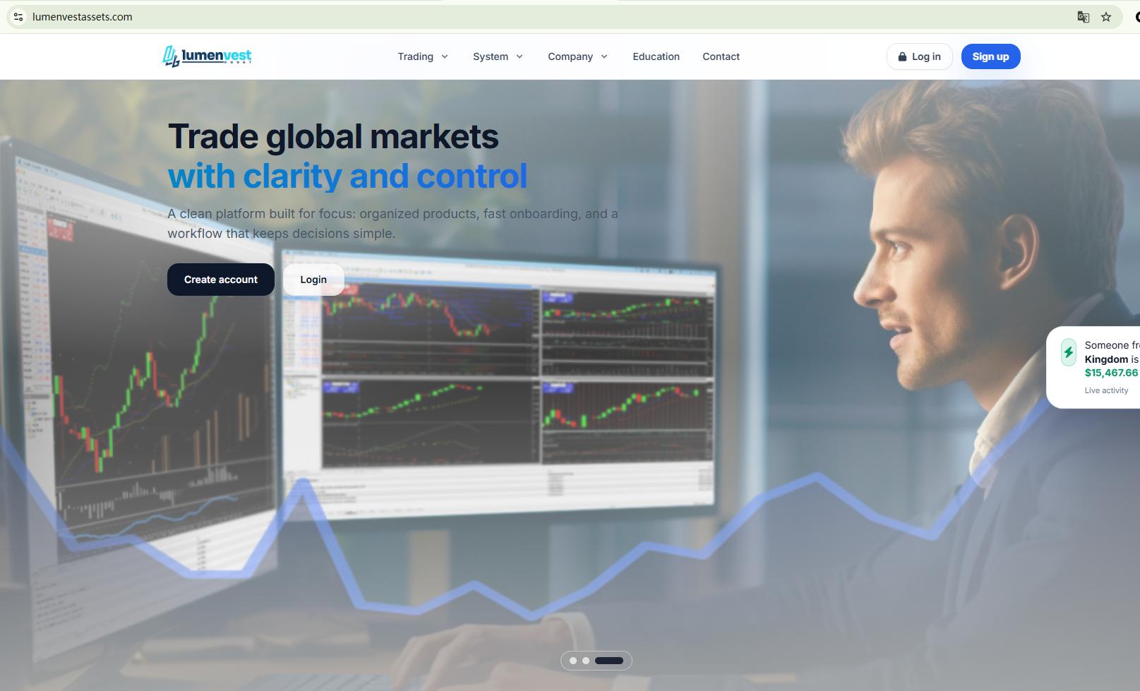 Lumenvest Assets’ website provides no regulatory disclosures, only claims that it was registered in the USA.