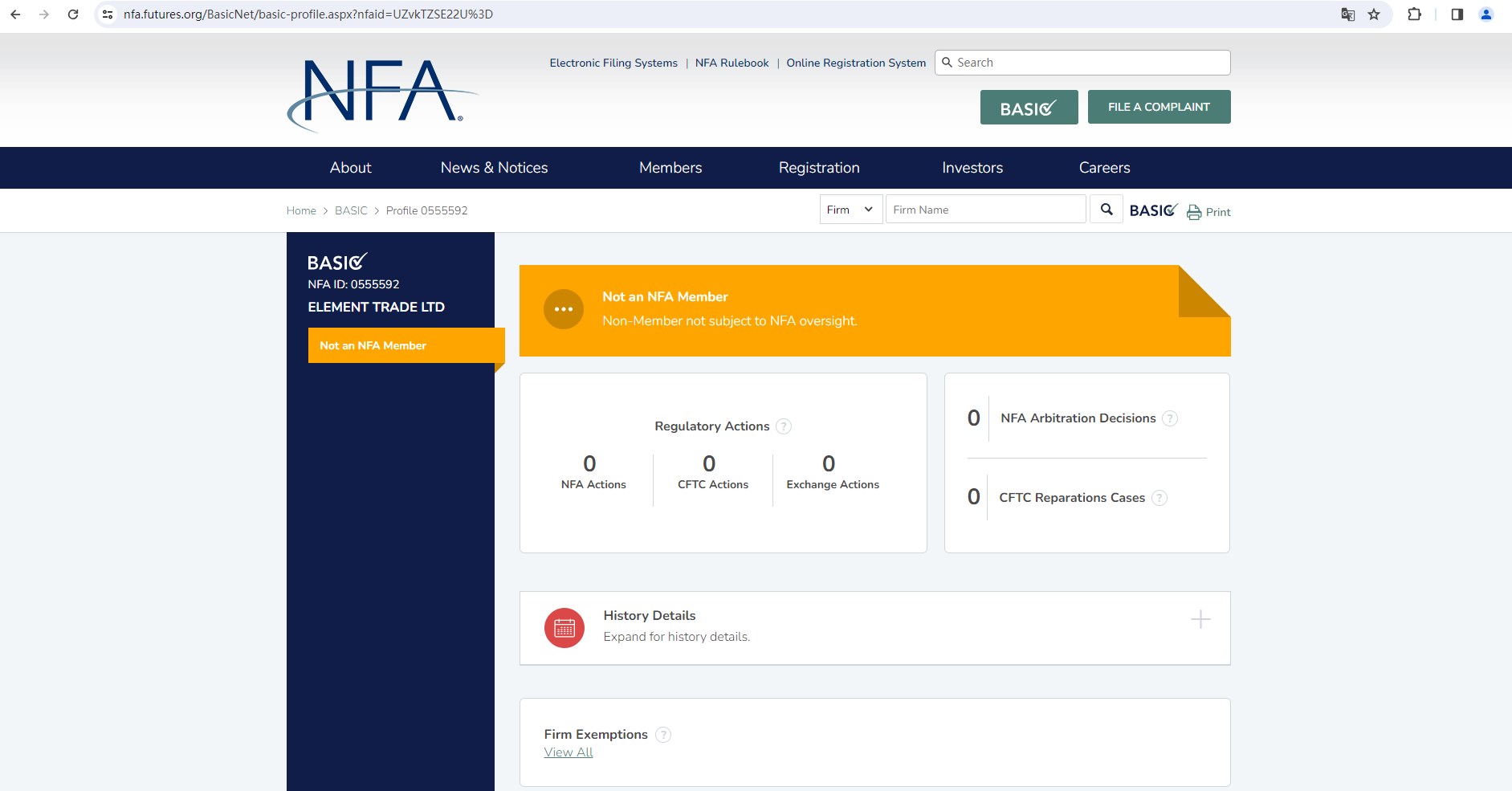 In addition, Madexu Trade MT5 also claims to have an NFA ID of 0555592. We did find matching records on National Futures Association (NFA) website but data shows that ELEMENT TRADE LTD is not an NFA-member and thus not subject to this regulator's oversight. We have discovered that there are multiple scam brokers claiming to have NFA licenses with the ID 0555592.
