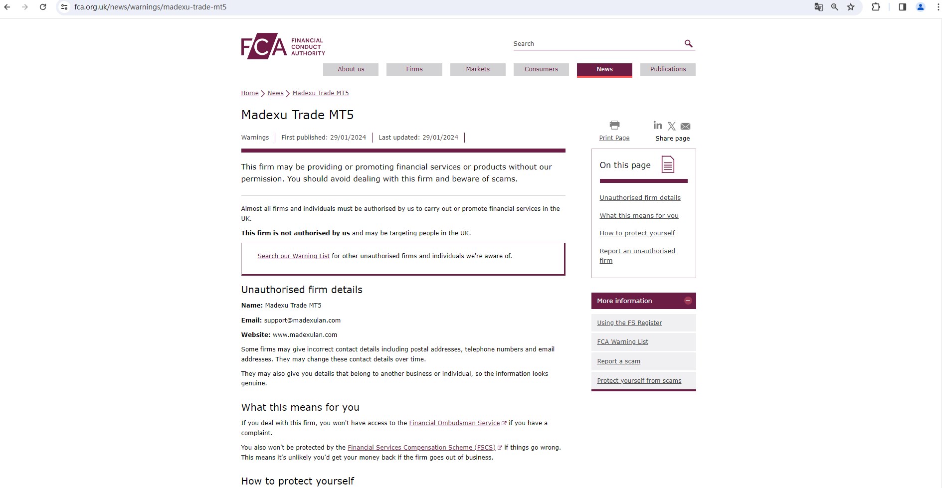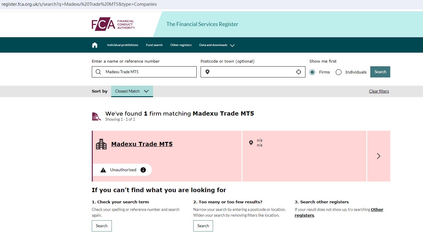 On 19 February 2024, the United Kingdom Financial Conduct Authority (FCA) issued a warning against Madexu Trade MT5, believing this company might be providing financial services or products without authorisation in the UK. You may visit: https://www.fca.org.uk/news/warnings/madexu-trade-mt5.