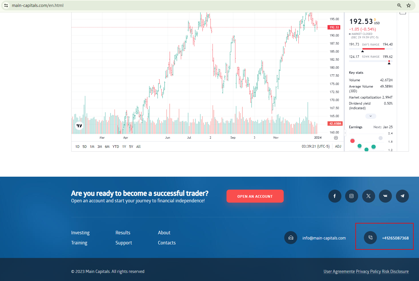 While Main Capitals purports to be a trustworthy, fully licensed broker, it does not provide any additional information about its regulatory status. This lack of regulatory disclosure is typically seen as a warning sign of potential scams.