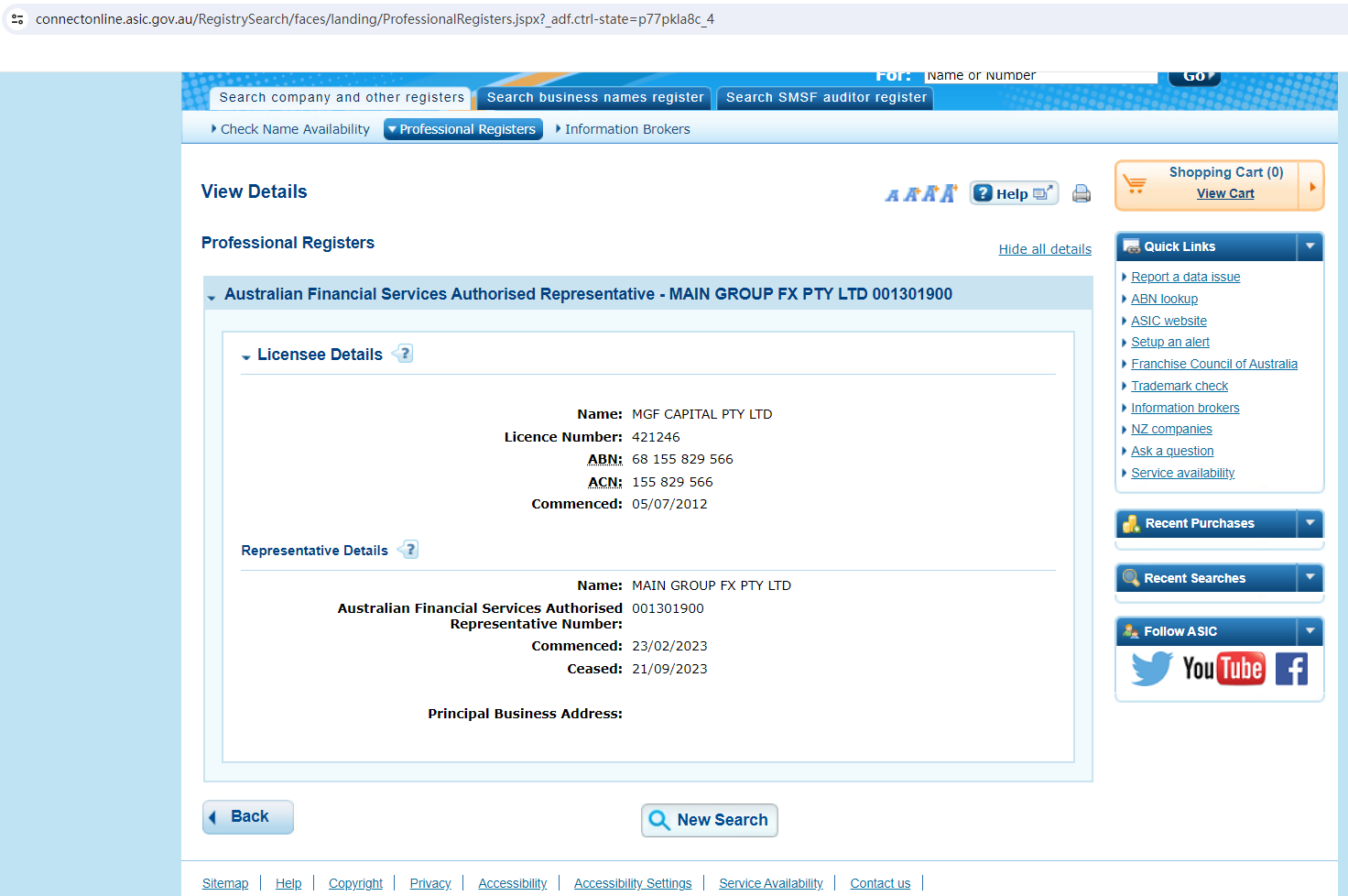 It claims to provide trading services such as foreign exchange, stock indices, commodities, precious metals, etc. It is the trade name of Main Group FX Pty Ltd, which is an authorized representative of MGF Capital Pty Ltd, Australian Securities and Investments Commission (ASIC) number 421246, authorized representative number 001301900. Upon investigation, we have found the information of its main card and authorized representative in Australia ASIC, but the qualification of the authorized representative has been canceled on September 21, 2023. Obviously, the platform is not regulated at all, so please do not make deposit transactions.The truth is that Main Group FX is not regulated by any regulators. Letting it hold or control investors' money is unsafe, and the money can not be protected by any laws.Main Group FX is a scam.