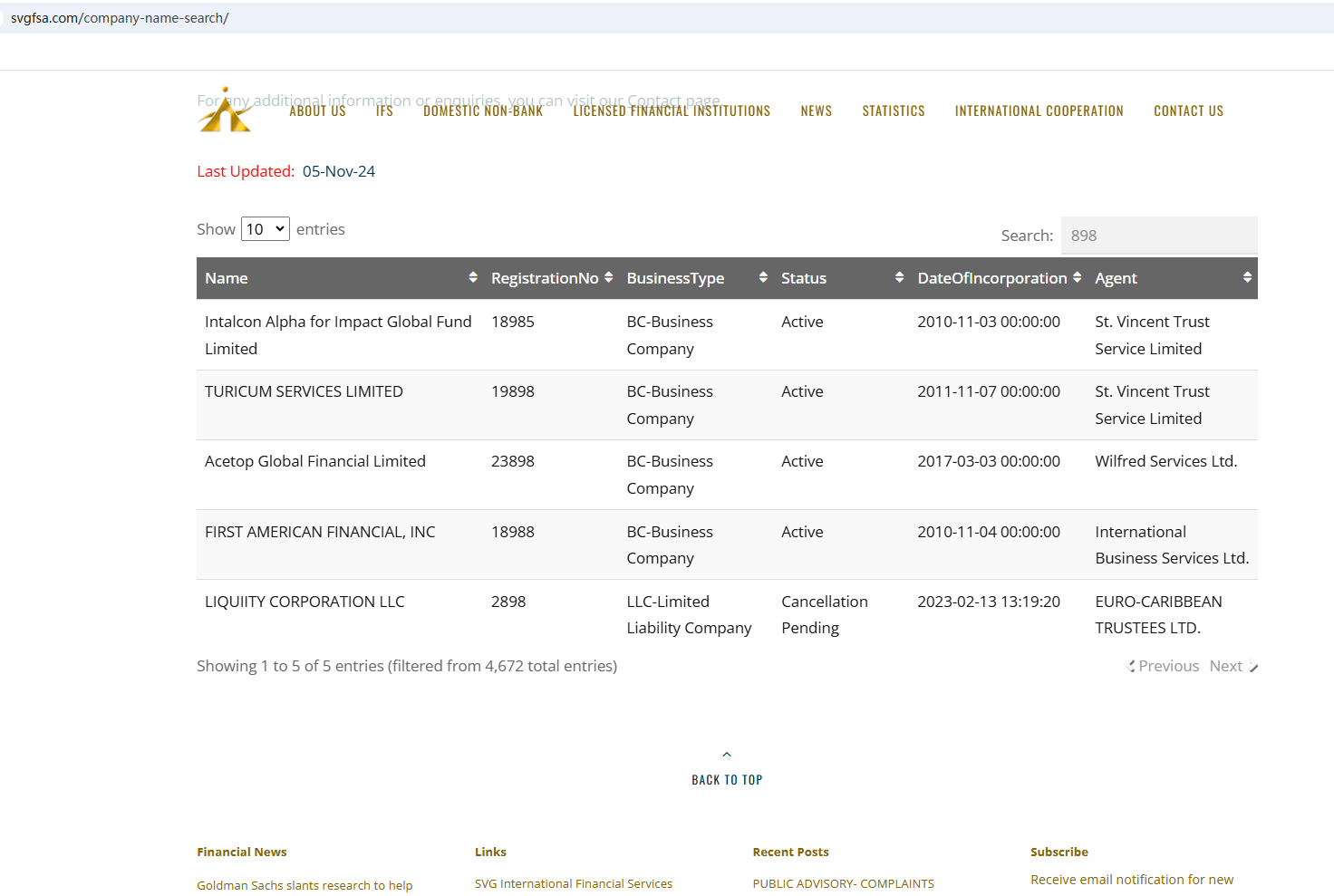 According to its website, it claims to be regulated by the Financial Services Authority (SVG FSA). Upon investigation, no matching information was found in the SVG FSA.